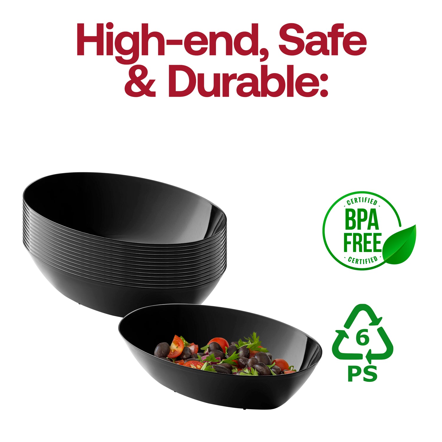 Black Oval Disposable Plastic Serving Bowls (2 qt.)