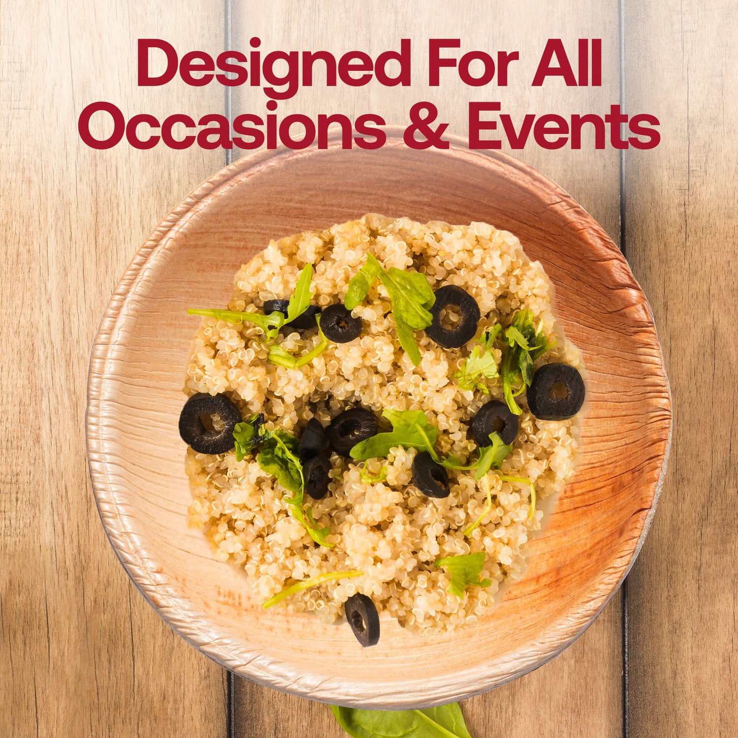 Making a great impression can be as simple as the way you serve your guests. With four packs of 25 bowls, you're sure to have plenty on hand to keep your guests well-fed. So forget about the same old boring serving style that you get every day. Instead, bring a unique twist to your event with these fancy round palm leaf bowls.