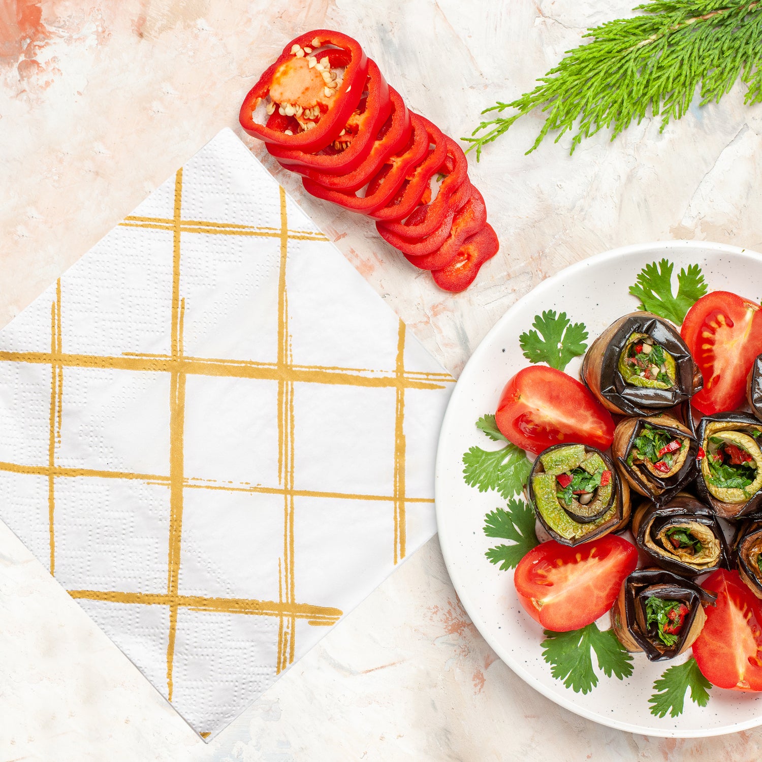 What sets these napkins apart is the luxurious touch of the gold diamond pattern. The metallic gold elements catch the light, adding a touch of glamour to your event. Whether neatly arranged on a drinks table or elegantly draped over the edge of a serving tray, these napkins instantly create an atmosphere of refinement. Furthermore, the combination of white and gold holds a timeless appeal that transcends trends, ensuring that these napkins will remain a staple in your entertaining arsenal for years. Their versatile design pairs well with various color schemes, allowing you to experiment with different decor options.