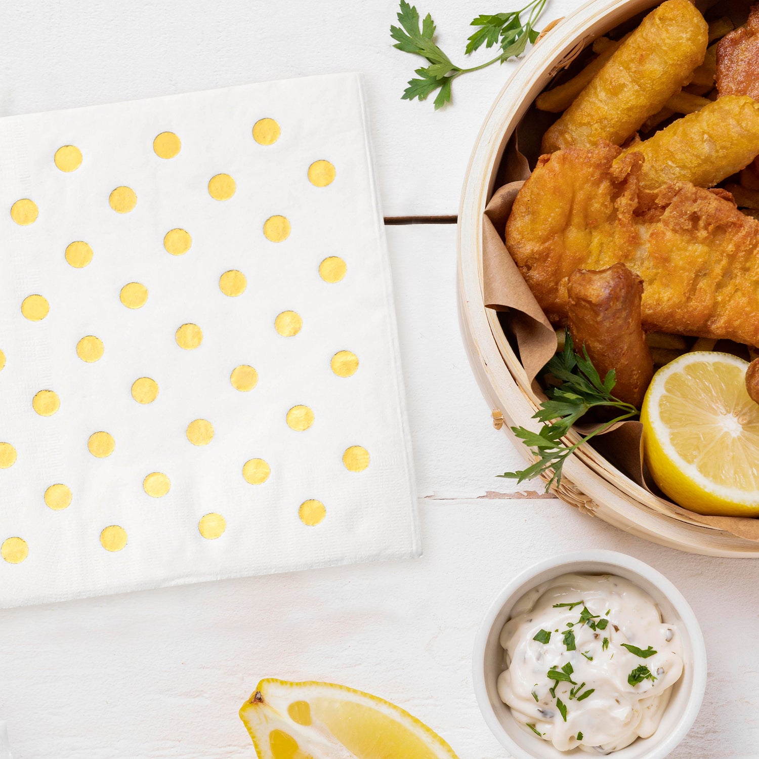 White with Gold Dots Disposable Paper Beverage/Cocktail Napkins