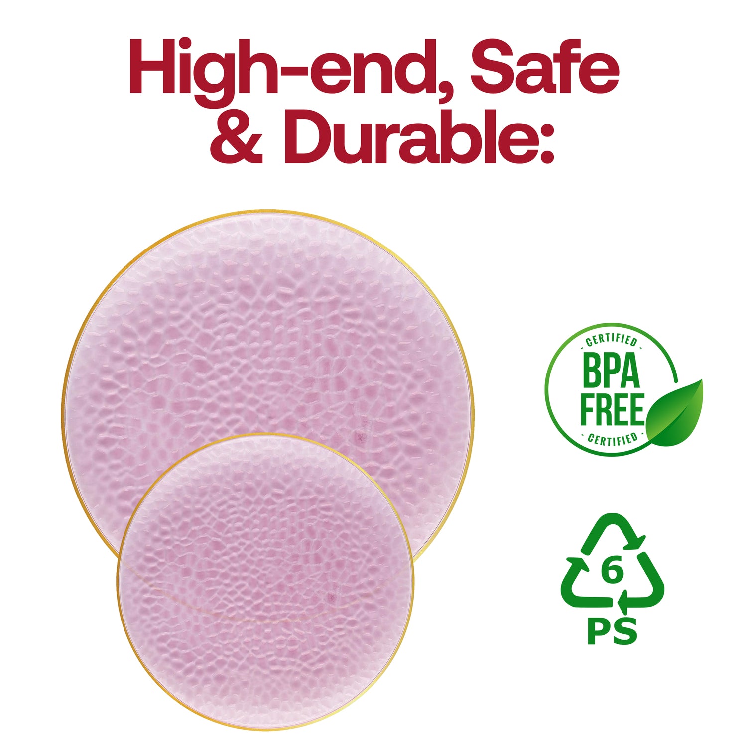 Clear Pink with Gold Rim Hammered Glass Plastic Dinner Plates (10.25")