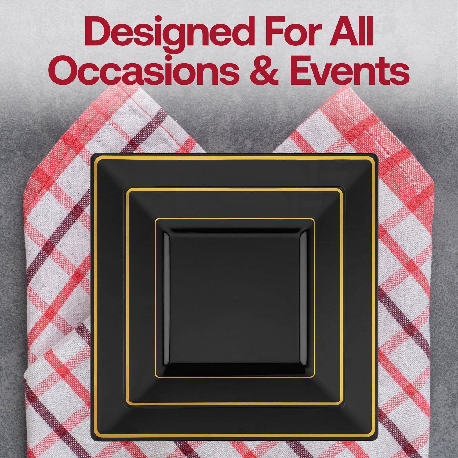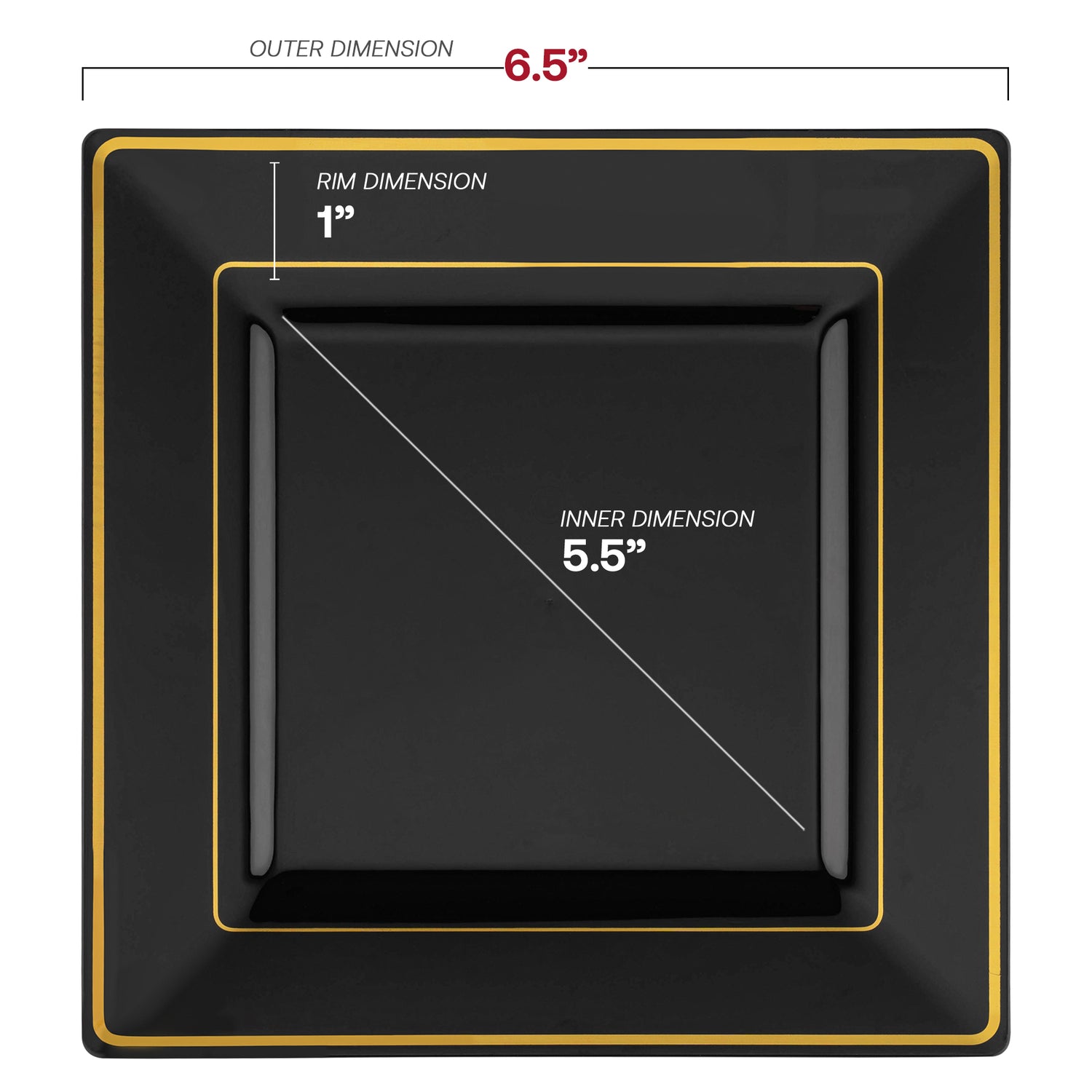 Black with Gold Square Edge Rim Plastic Salad Plates (6.5")