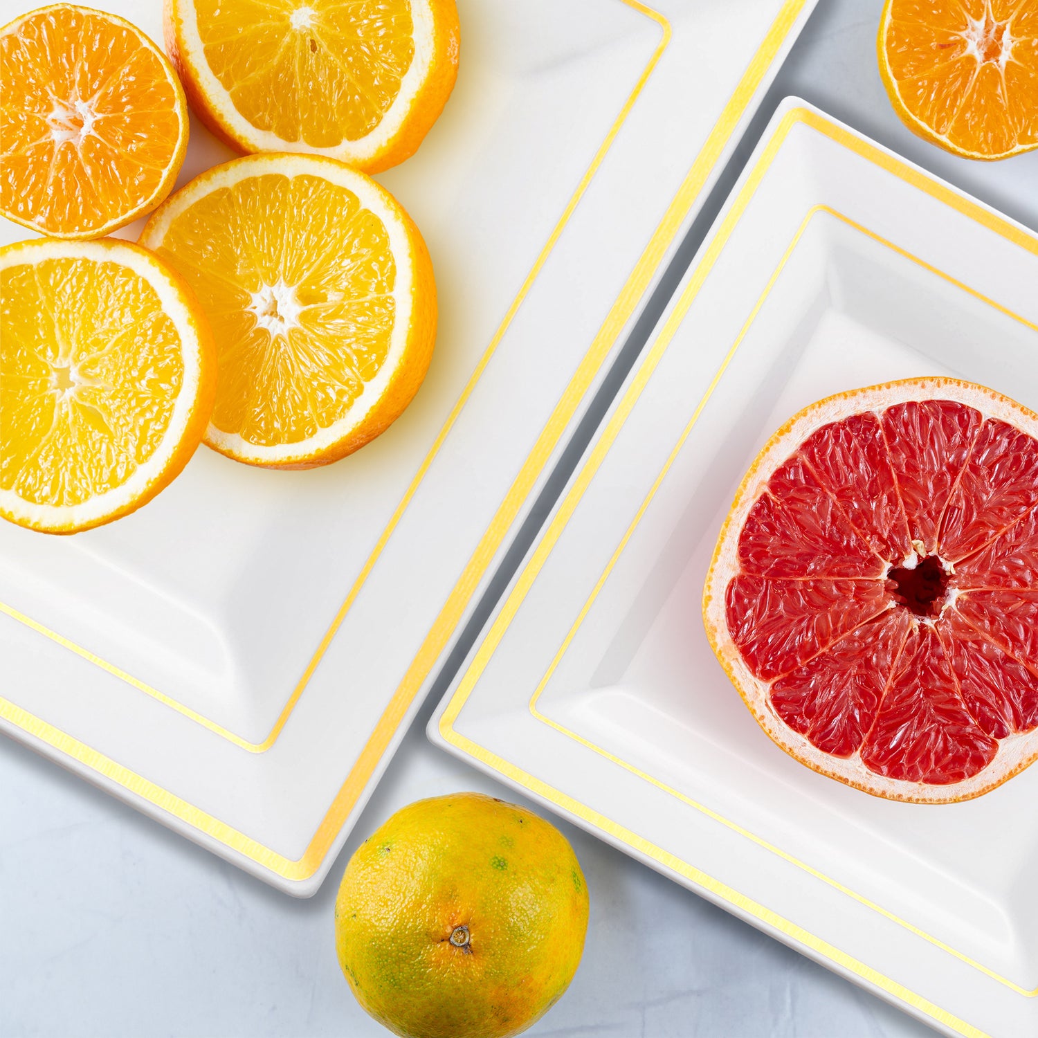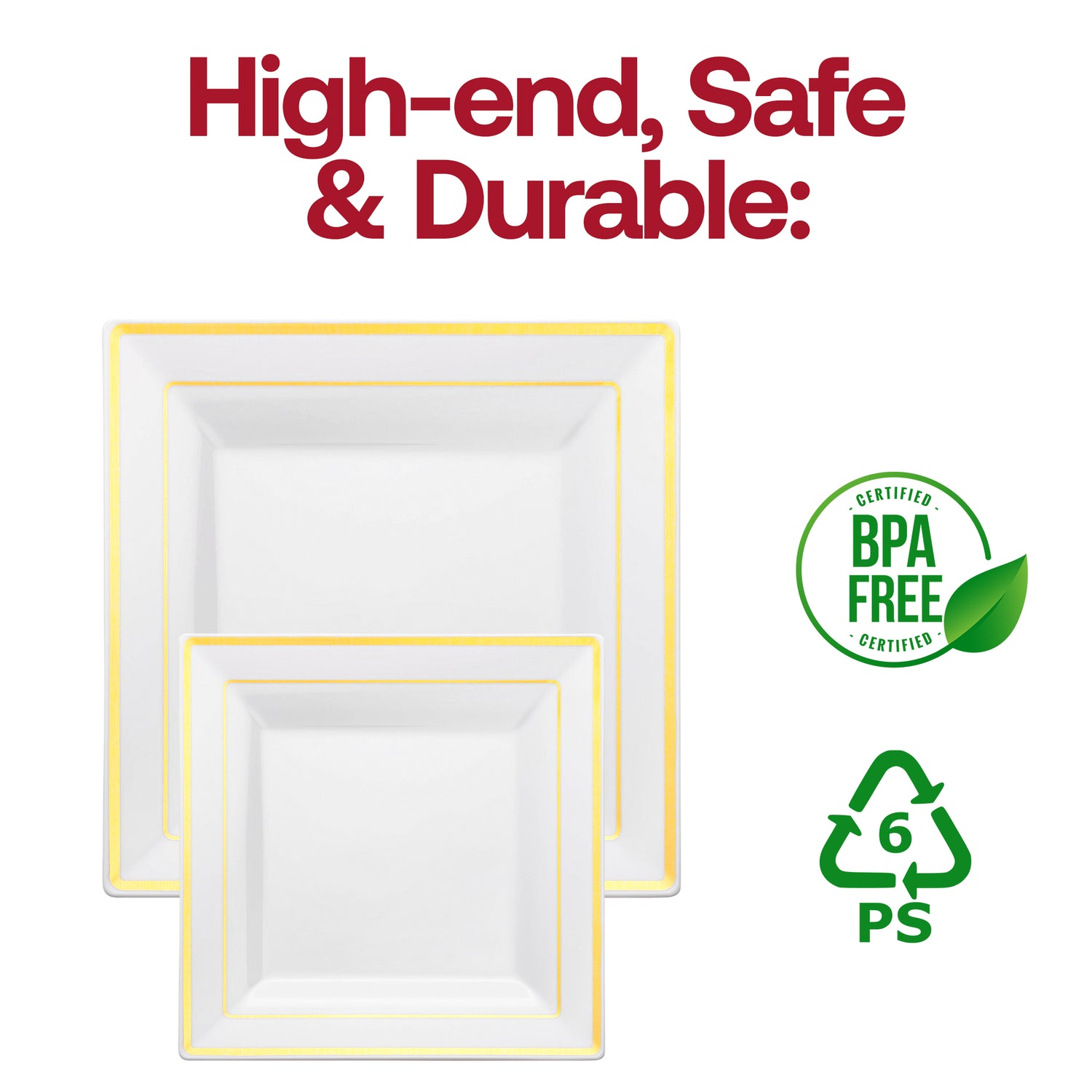 White with Gold Square Edge Rim Plastic Salad Plates (6.5")
