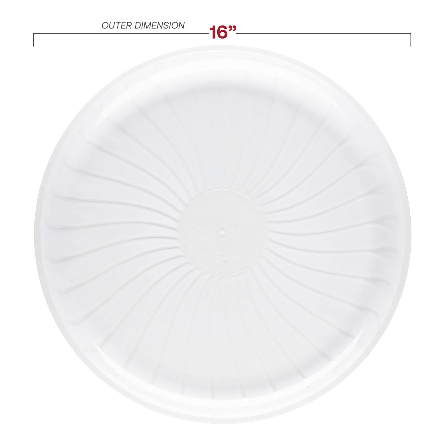 These disposable plastic trays are perfect for serving an array of snacks and treats. The clear, non-toxic material makes it easy to keep your foods protected. The convenient 16" length is perfect for keeping foods out of the reach of little hands. Easy to clean and reuse, these trays are a cost-effective option for those looking to save money. In addition, these clear pavilion round disposable plastic trays are perfect for picnics, school parties, parties, birthdays, wedding receptions, baby showers, holiday feasts, bridal bashes, and so on.