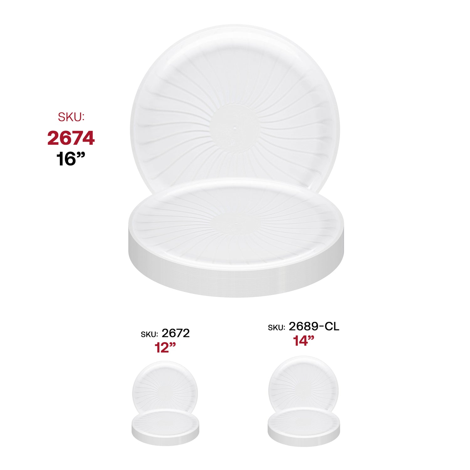 Bright, beautiful, and lightweight, these premium disposable plastic trays are perfect for food serving and storage. The round shape is ideal for various uses, from serving food to serving plates to catering. Their durable construction keeps contents in place and prevents spills. In addition, the clear construction makes it easy to see contents while they're being served.