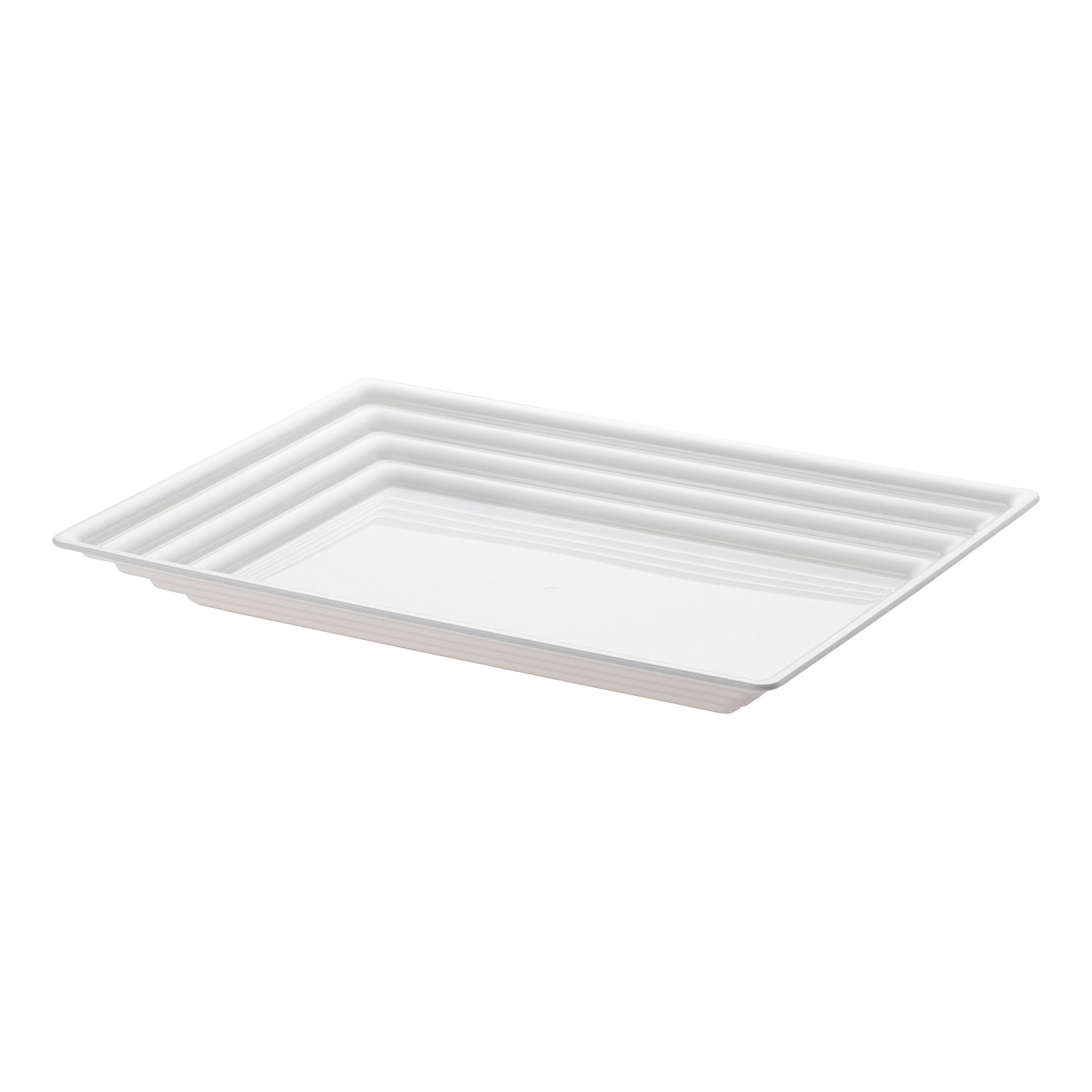 9" x 13" White Rectangular with Groove Rim Disposable Plastic Serving Trays