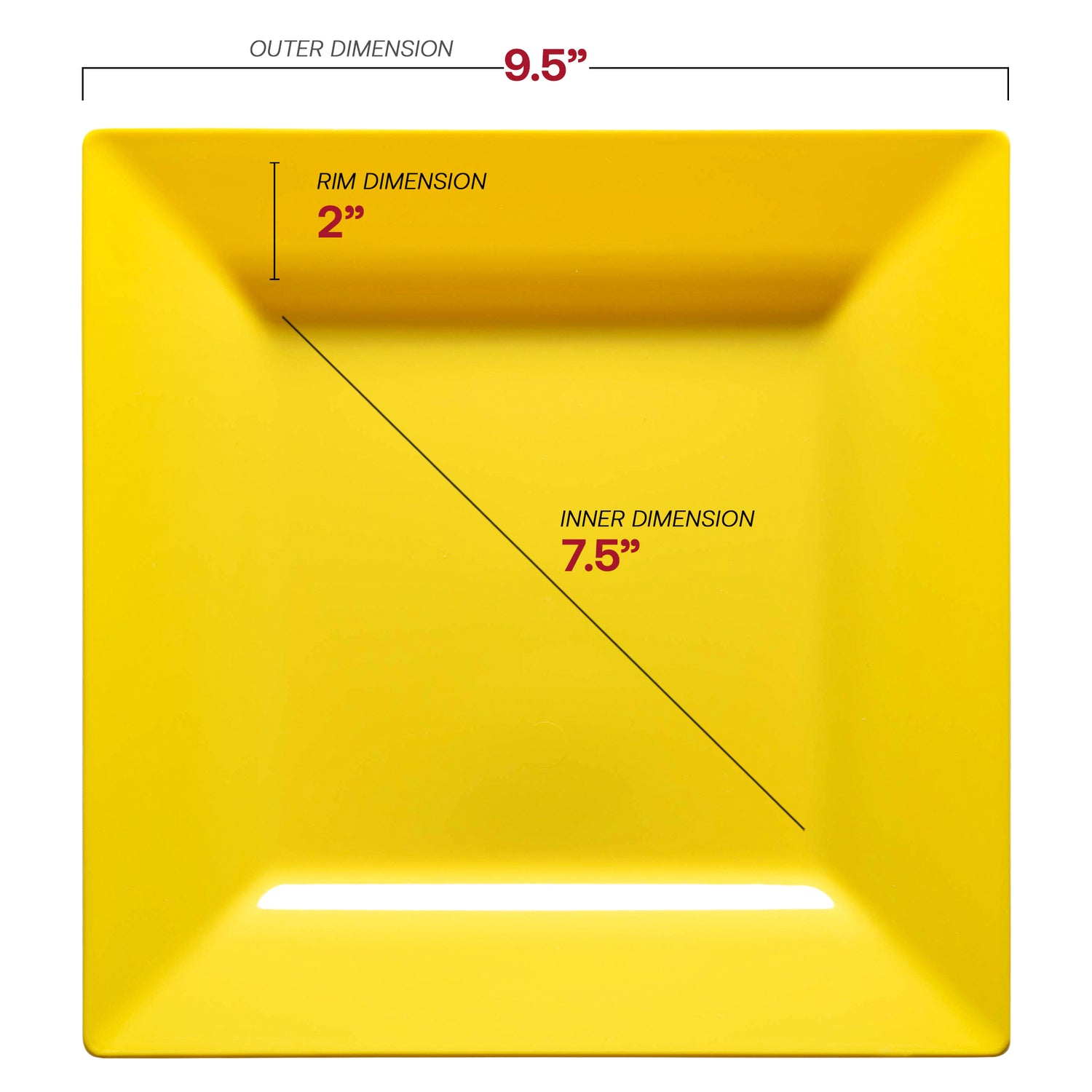 Yellow Square Disposable Plastic Dinner Plates (9.5")