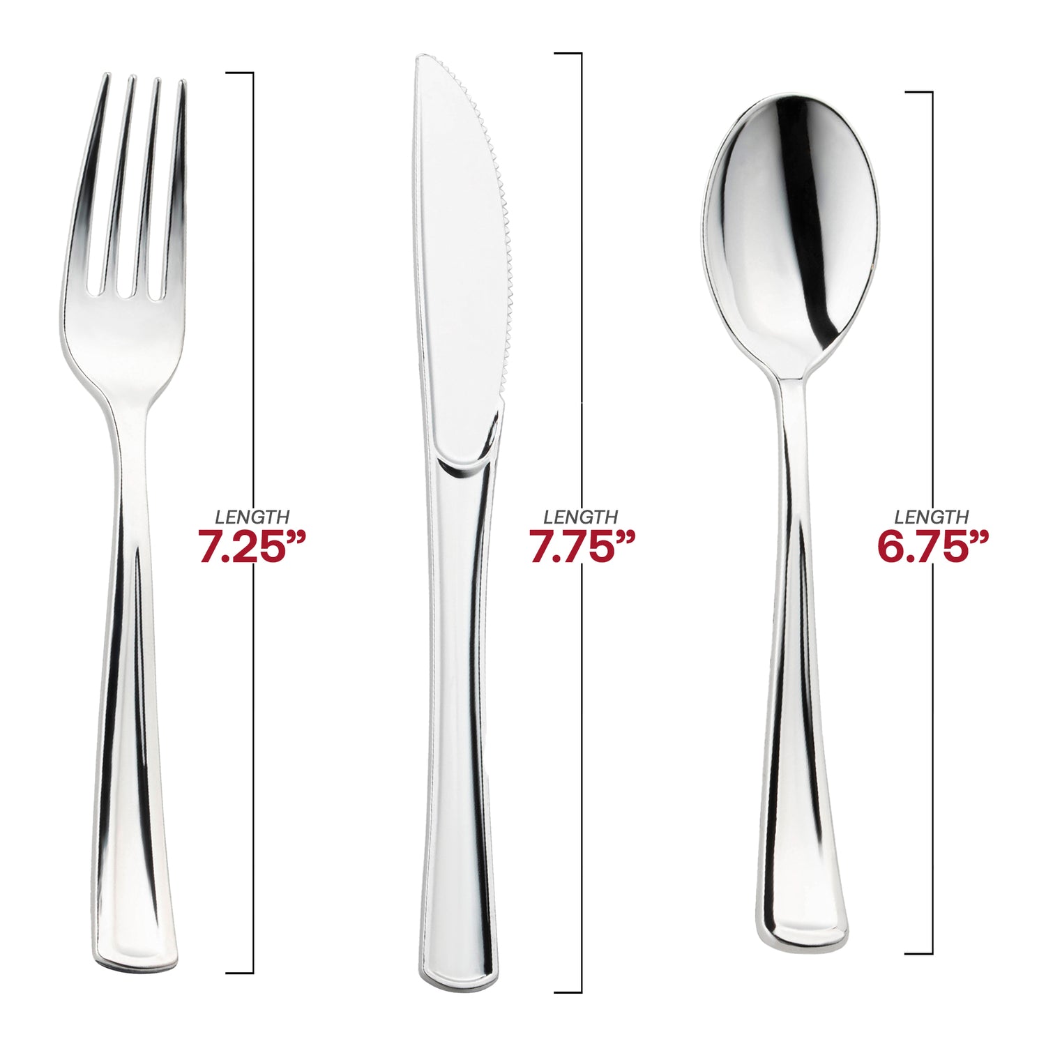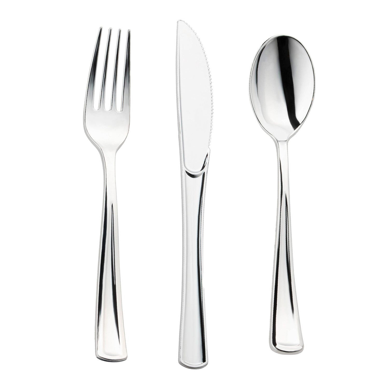 Shiny Metallic Silver Disposable Plastic Cutlery Combo Set