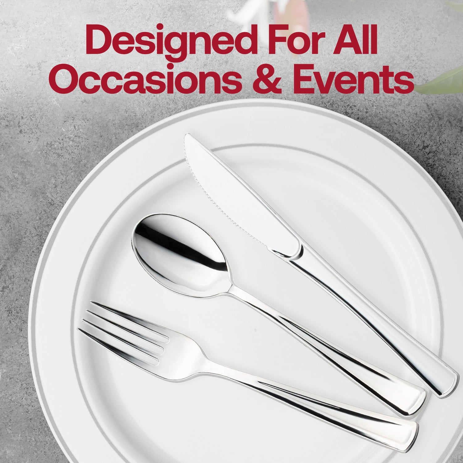 Create an ultra-modern place setting for your next dinner party, wedding reception, or holiday feast with this gorgeous plastic cutlery set. With service for 60 and 120, this exquisite cutlery set of matching forks, spoons, and knives is perfect for casual gatherings and elegant entertaining! And there is no more long-lasting washing when the party is over - this top-quality plastic cutlery set is disposable, providing an effortless cleanup process.