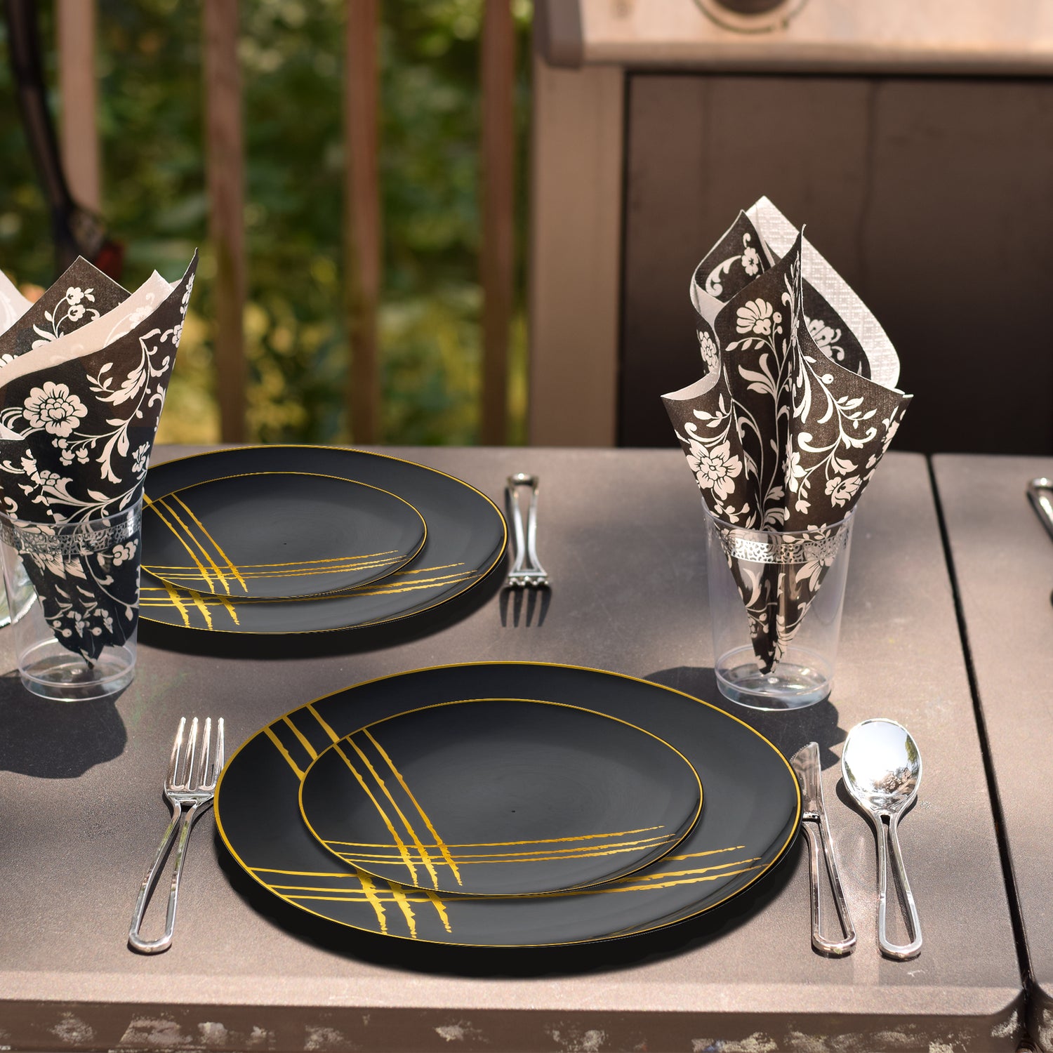There's nothing more practical than disposable plates. You'll be able to enjoy every bite of food on these fantastic disposable plates €” and they'll make a great addition to your party decor. In addition, the elegant black color keeps the dishes looking elegant and classy.