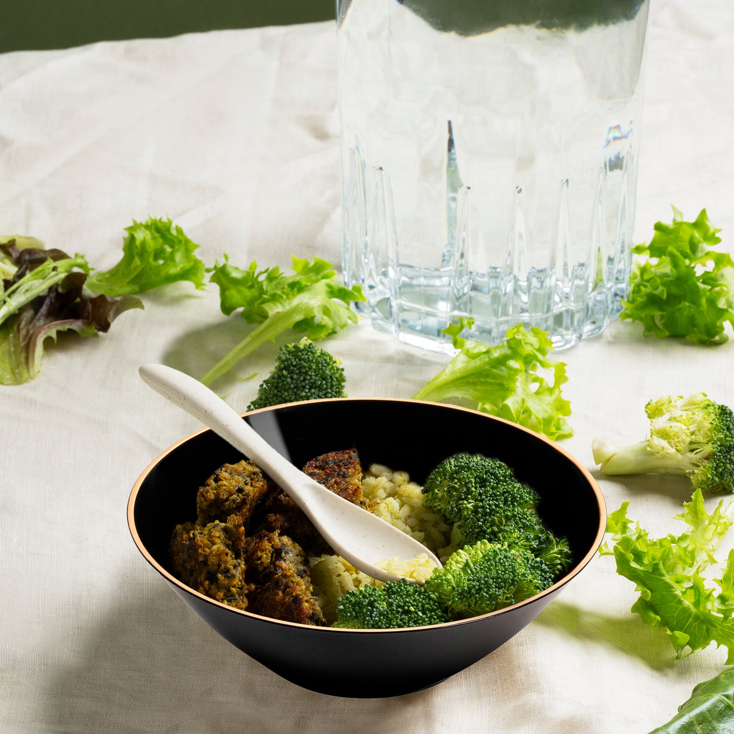 Black with Gold Rim Organic Round Plastic Dessert Bowls (6 oz.)