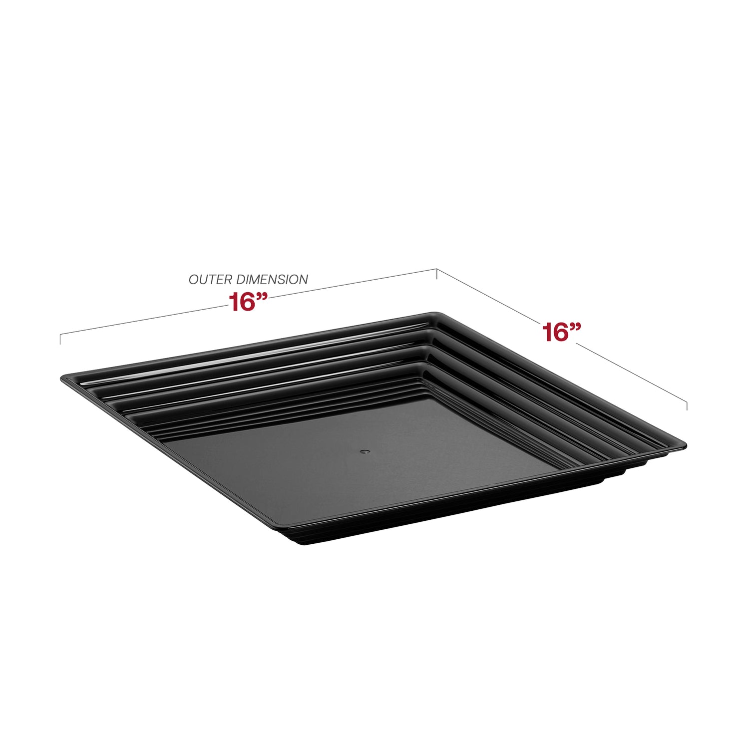 16" x 16" Black Square with Groove Rim Disposable Plastic Serving Trays