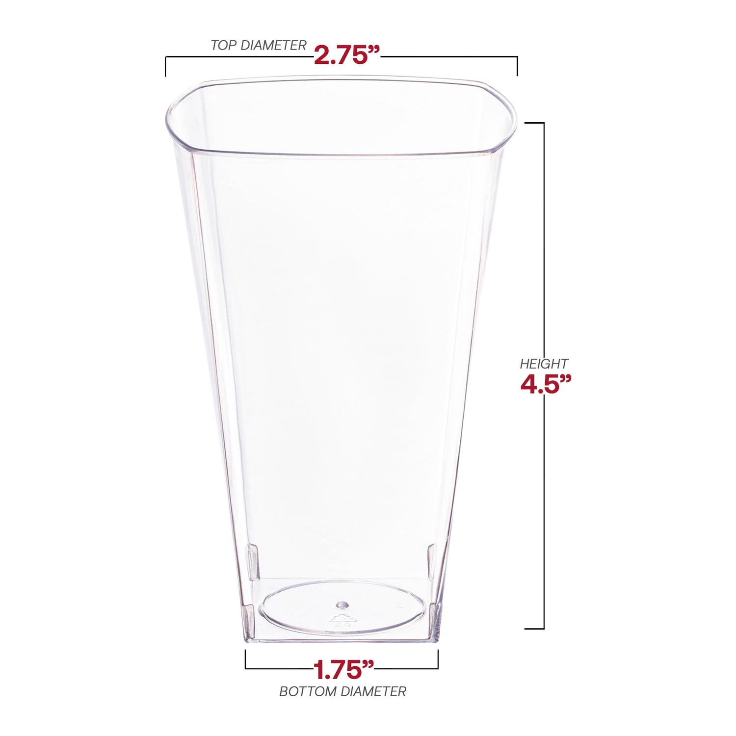 - Approx. bottom dimensions: 1 ¾" x 1 ¾"