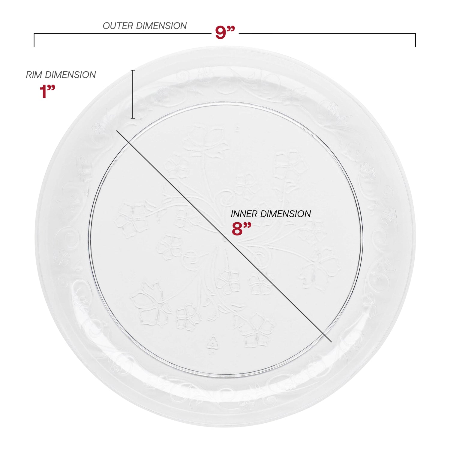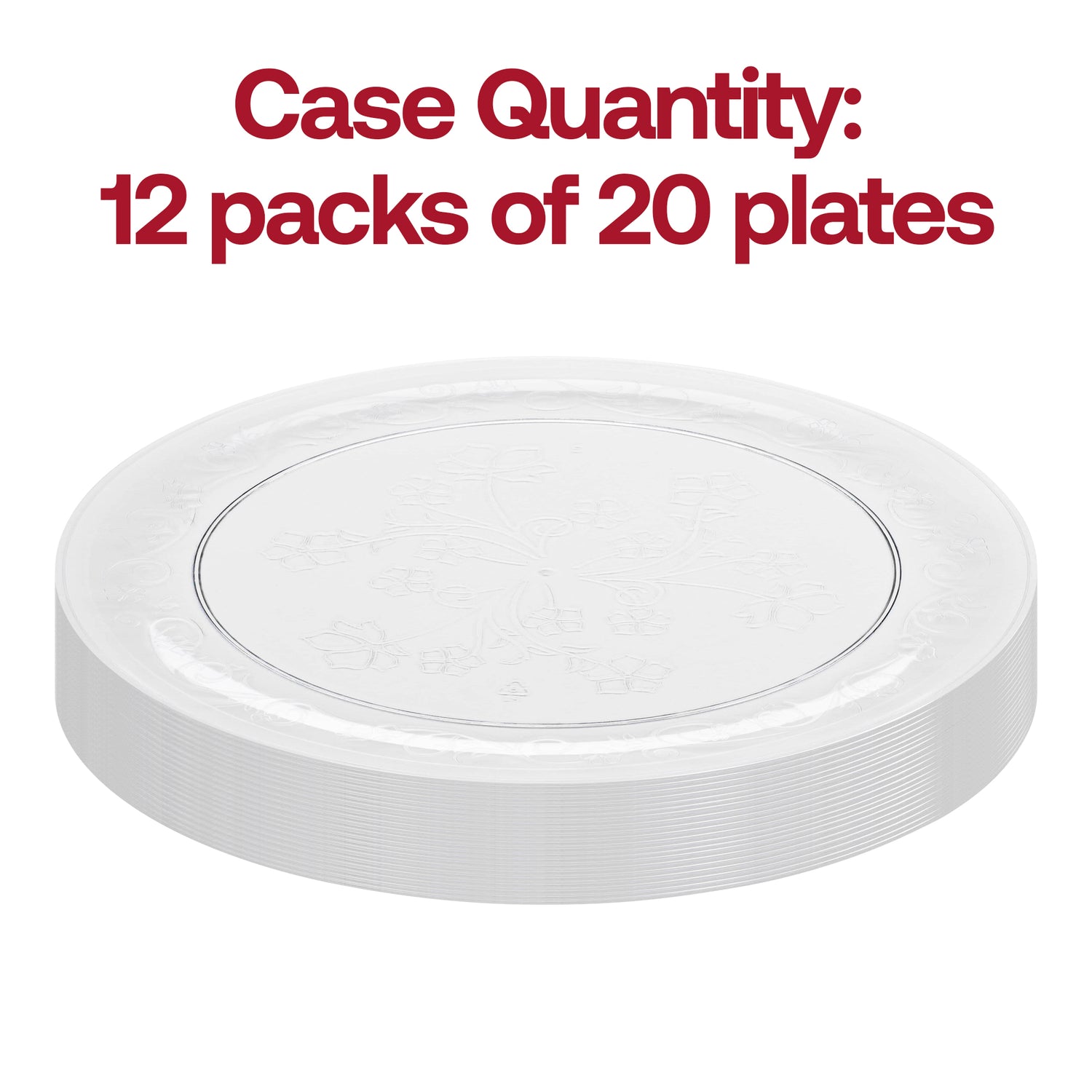 These gorgeous floral disposable plastic buffet plates are a stylish and convenient choice for any special event, whether a wedding reception, birthday party, baby shower, bridal bash, holiday feast, engagement party, anniversary celebration, or corporate event. These fabulous disposable plastic plates feature a beautiful floral design that adds a touch of elegance to your table setting, and their clear construction makes them suitable for any color scheme or decor.