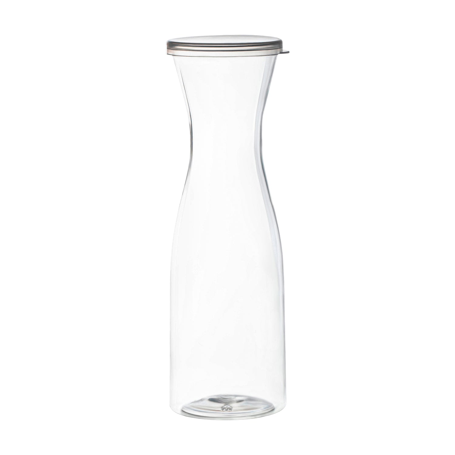 Keep your party decorations looking classy with these disposable wine carafes. Serve a variety of beverages in this clear carafe with a screw-on lid. The screw-top lid and sturdy plastic construction make this product durable and versatile. These disposable plastic wine carafes are made of durable and safe plastic that can withstand high temperatures without breaking. This carafe is great for party supplies, catering, and everyday use.
