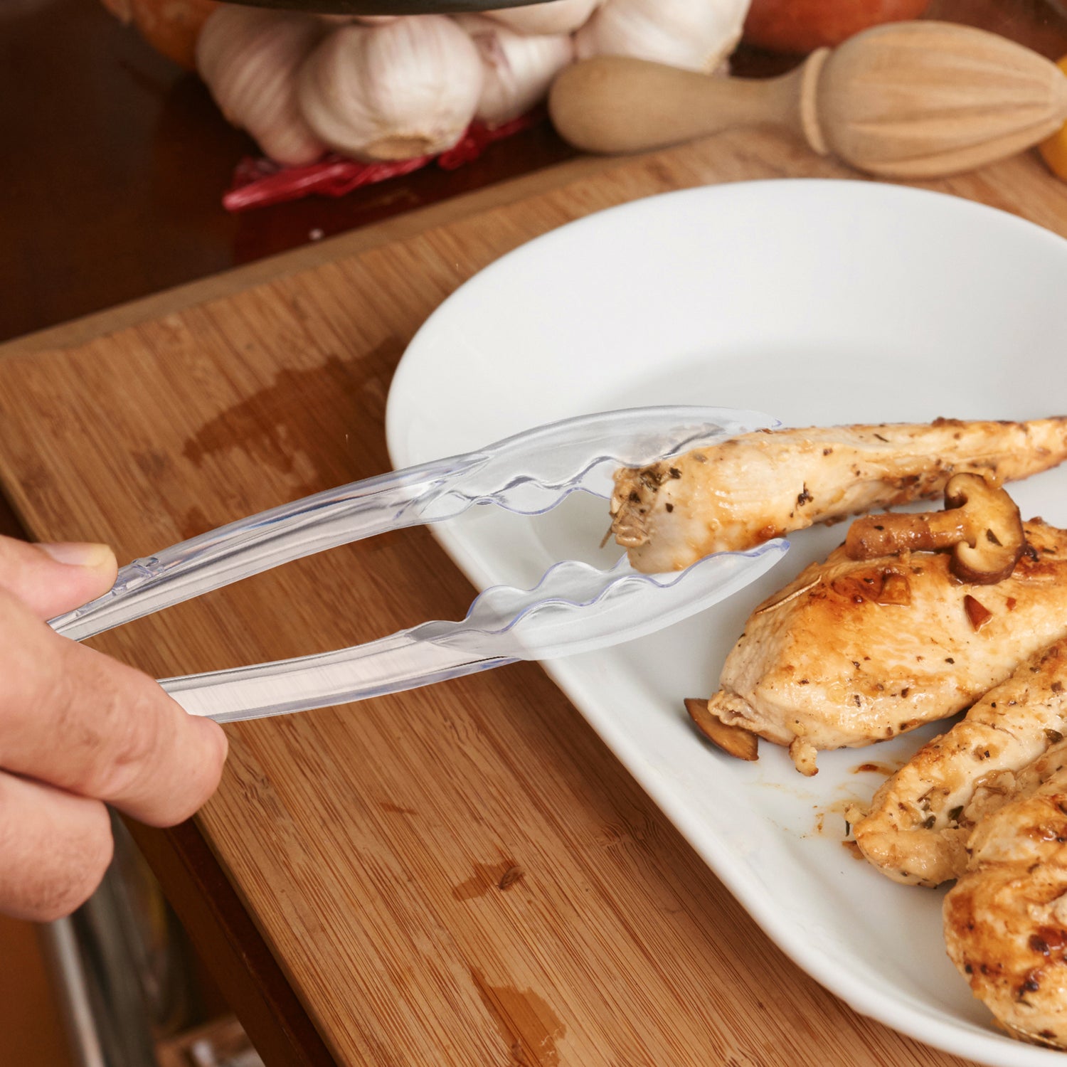 Upgrade your dining experience and simplify cleanup with these reliable and elegant disposable plastic serving tongs. These versatile tongs are crafted to meet the demands of both professional caterers and home entertainers, providing a seamless solution for serving various dishes with style and hygiene. The first thing you'll notice about these serving tongs is their impeccable clarity. Made from high-quality, crystal-clear plastic, these tongs exude sophistication and are an excellent choice for events where aesthetics matter. The transparency adds a touch of elegance to your presentation and ensures that your guests can quickly identify the food being served, enhancing the overall dining experience.