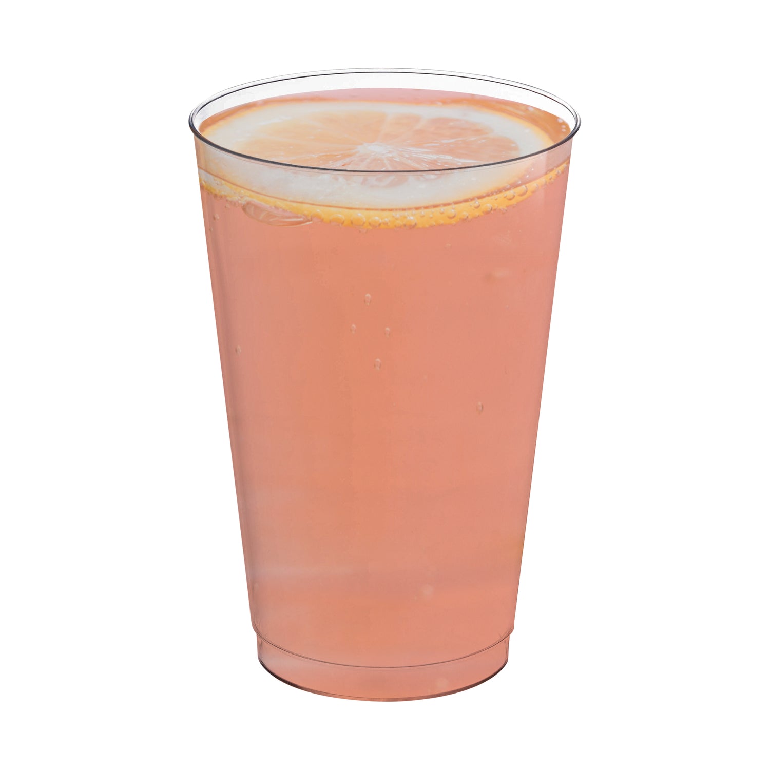 Whether you intend to serve your party guests, from water to lemonade to tea to specialty drinks, you can do so in the 14 oz. Clear Savvi Serve Disposable Plastic Tumblers. This premium plastic tumbler is designed to accommodate any drink with two different fill capacities for you to take advantage of; they can be filled to 14 ounces for a flush fill or 12 ounces for a practical filling. The cups are completely see-through, and you will be able to keep an eye on your guests' glasses to keep them refilled on time. Their simple and minimalistic yet modern design is only interrupted by the tiny bit of detail along the base of the cup, giving it subtle visual appeal.