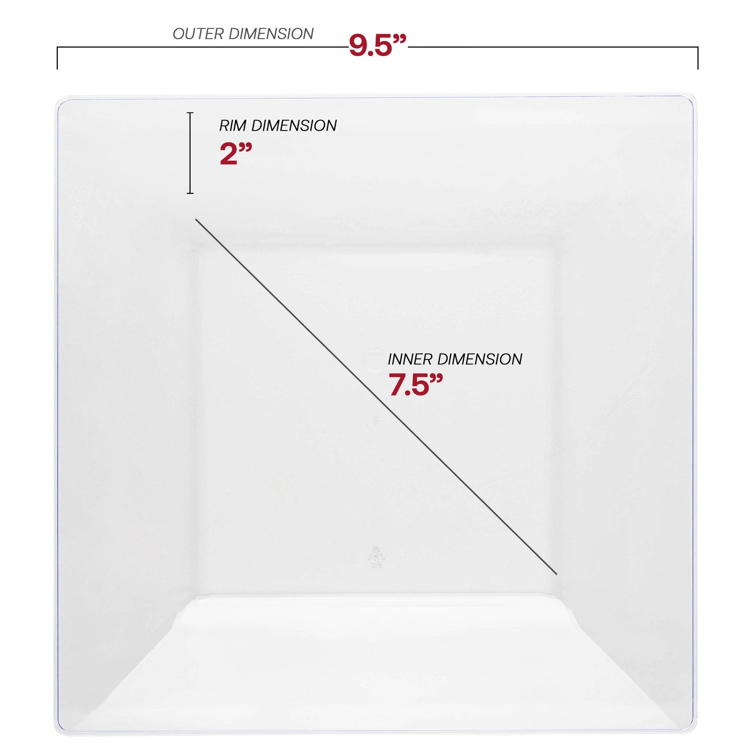These 9.5" Clear Square Disposable Plastic Dinner Plates come in bulk cases with 12 packs in each case and 10 plates in each pack. Buying in bulk ensures you have enough plates for your guests and will save you money at the same time.
