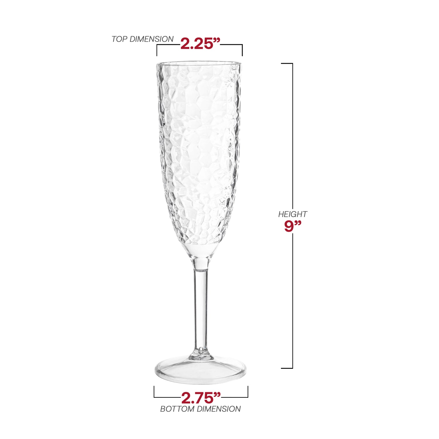 Give your guests the ultimate party favor with these disposable plastic champagne flutes. These crystal flutes feature a clear finish and are perfect for popping the cork and sharing a toast. In addition, a clear finish ensures that the champagne glows as it pours. These crystal plastic disposable champagne flutes are ideal for fancy events such as birthday parties, baby showers, weddings, anniversaries, holiday feasts, and more.