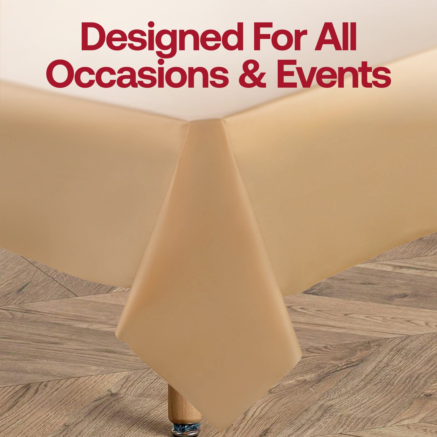 Constructed from high-quality disposable plastic, these tablecloths strike the perfect balance between elegance and practicality. The material is not only durable but also ensures effortless cleanup. Bid farewell to the hassles of laundering traditional table linens; simply dispose of these after the event, freeing you from post-celebration chores. The disposable design of these tablecloths doesn't compromise their visual appeal, making them an ideal choice for those who seek a seamless blend of style and convenience.