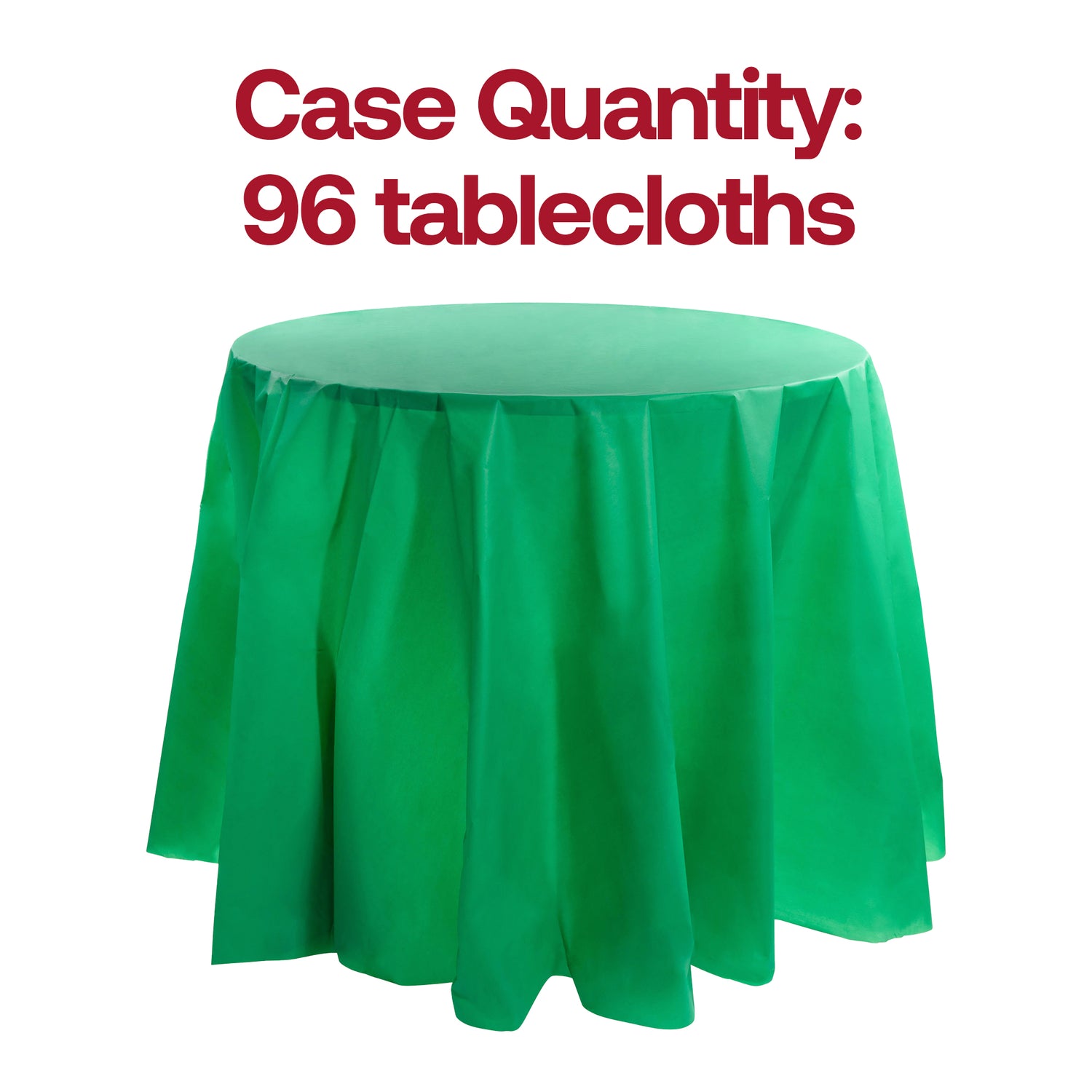 These elegant and practical hunter-green disposable plastic tablecloths are the perfect addition to any event or occasion. Crafted with precision and designed to impress, these tablecloths offer style and convenience, ensuring a hassle-free experience for hosts and guests alike. Measuring a generous 84 inches in diameter, these tablecloths are designed for round tables, providing a seamless and polished look. The rich hunter-green color adds a touch of sophistication and elegance to any setting, making them an ideal choice for weddings, banquets, birthday parties, and other special events.