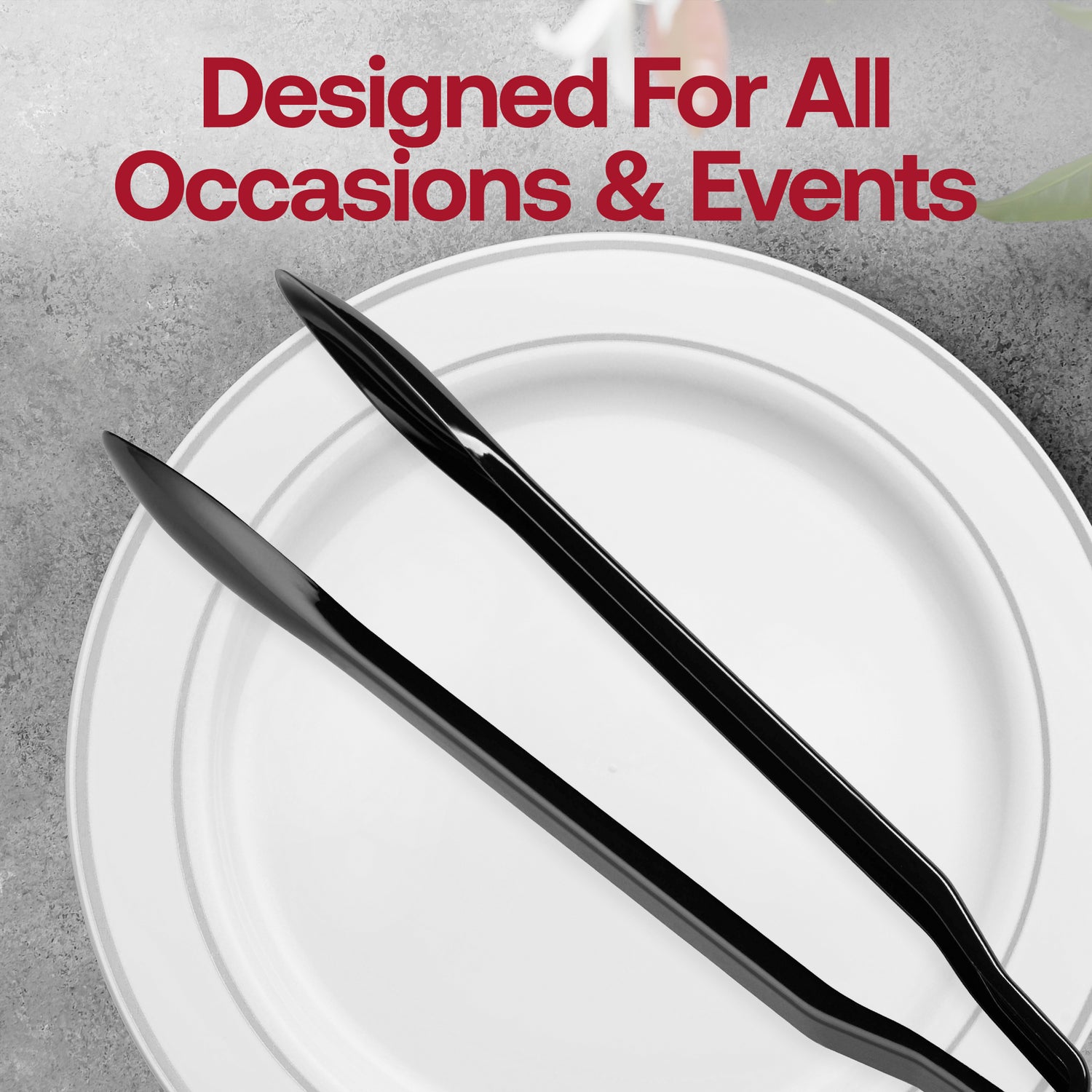 Introducing the black disposable plastic serving tongs – the ideal solution for effortless and stylish food presentation at any event or gathering. These tongs combine convenience and elegance, making them essential to your serving arsenal. They are designed to ensure a secure grip on various food items, from delicate appetizers to hearty entrées and delectable desserts. The 12" length perfectly balances control and reach, allowing you to serve your culinary creations with precision, even from a distance. The sleek black color adds a touch of sophistication to your table, making them suitable for both casual and formal occasions.