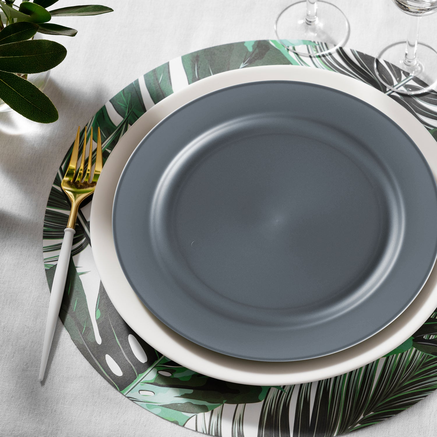 Matte Charcoal Gray Round Plastic Dinner Plates (10")