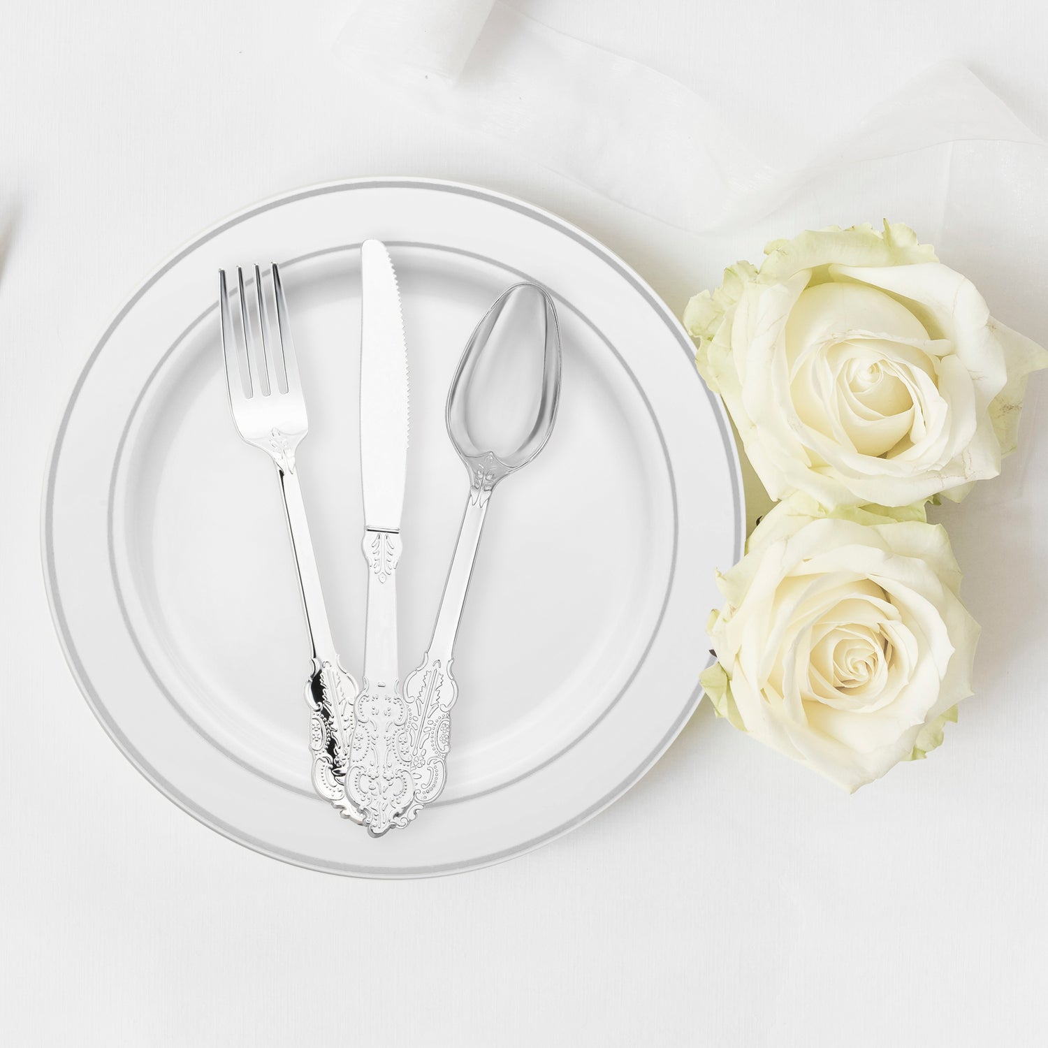 7.8" Shiny Baroque Silver Disposable Plastic Knives