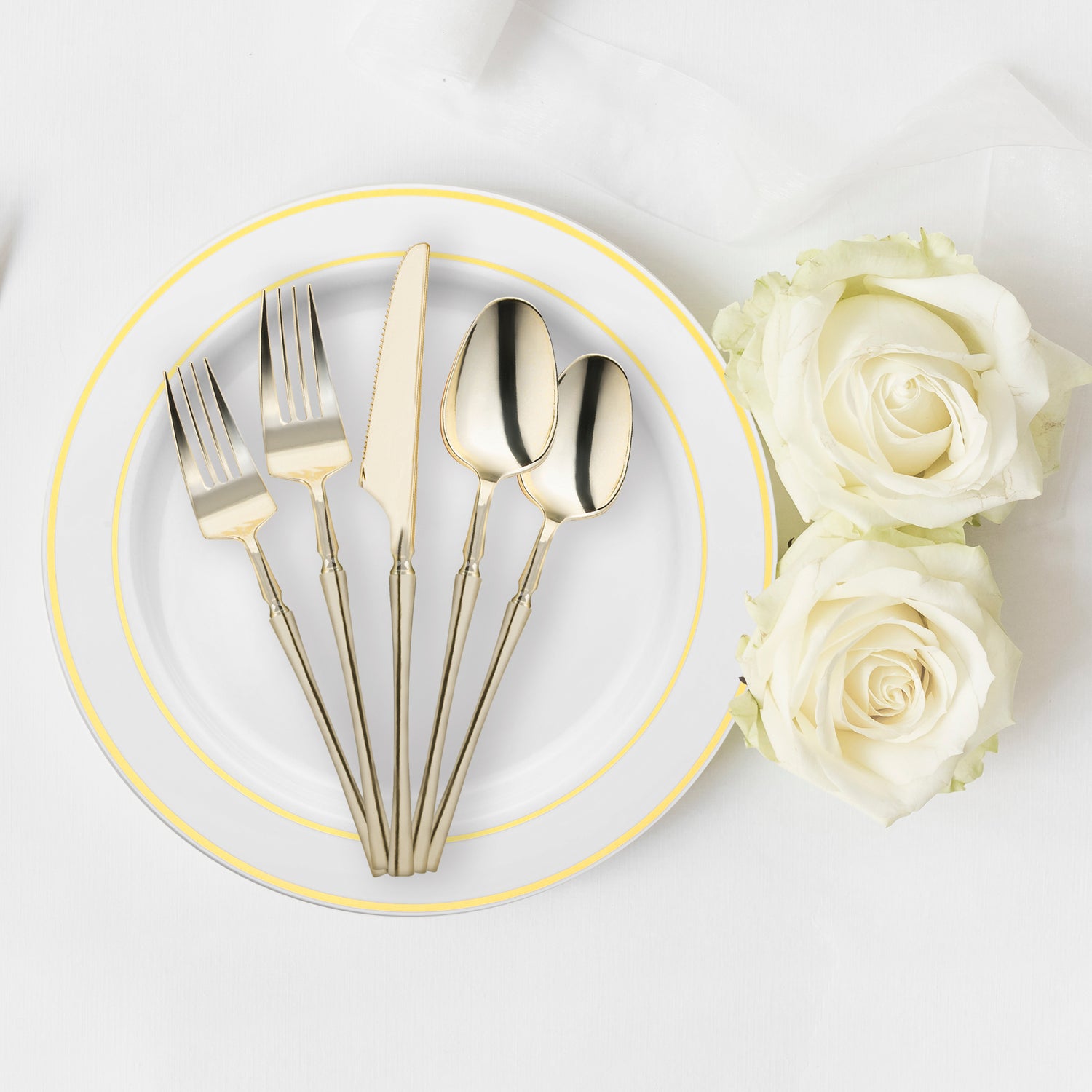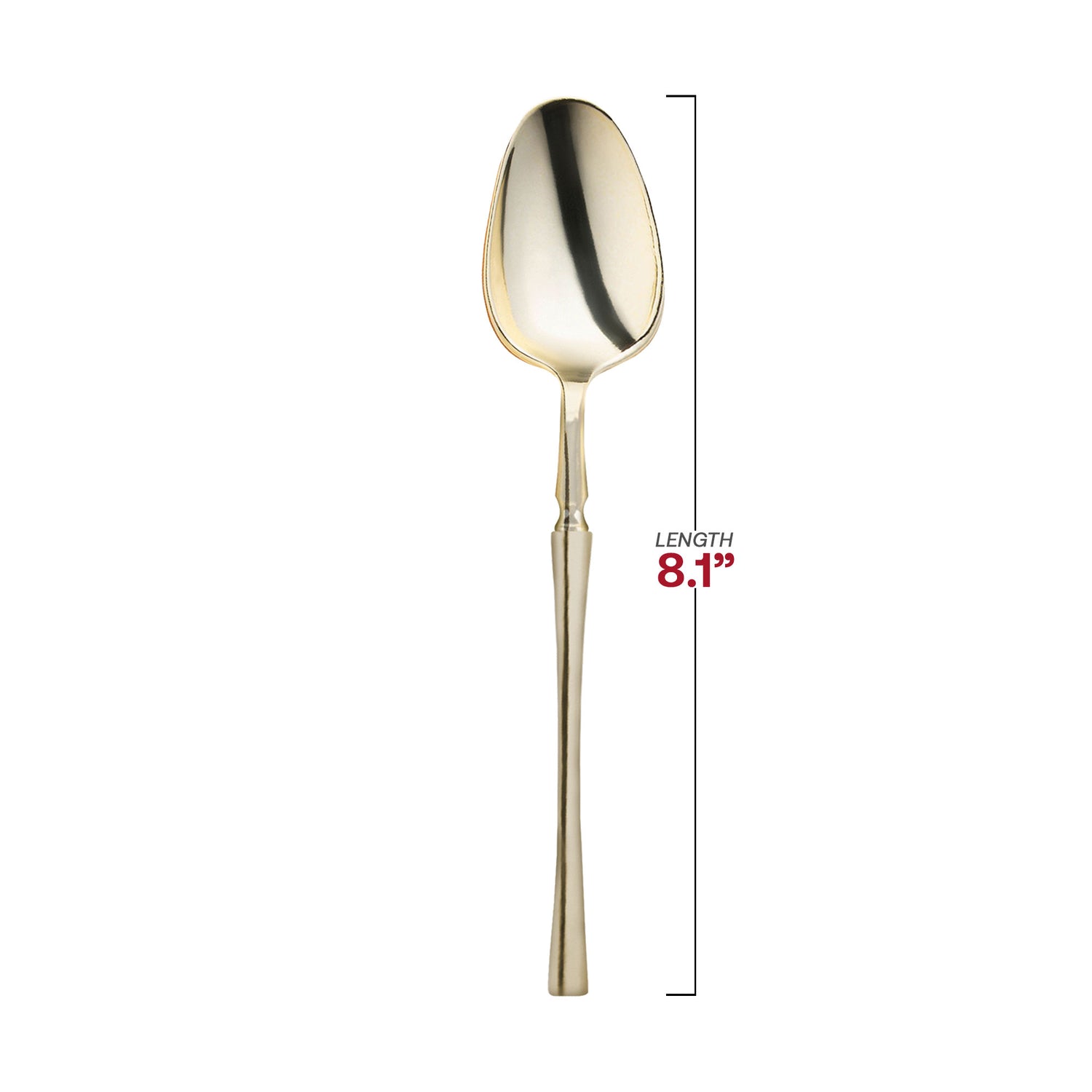 These modern disposable plastic dinner spoons will add a touch of elegance to your next event. Crafted with precision and style, these spoons are designed to add a touch of sophistication to your dining experience without the hassle of cleanup. Each spoon in this exquisite set is made from high-quality, durable plastic that mimics the look and feel of real gold cutlery. The shiny gold finish exudes luxury and opulence, creating a stunning visual impact that will impress your guests. So whether you're hosting a wedding reception, birthday party, or formal dinner, these spoons elevate the ambiance and enhance the overall aesthetic of your table setting.