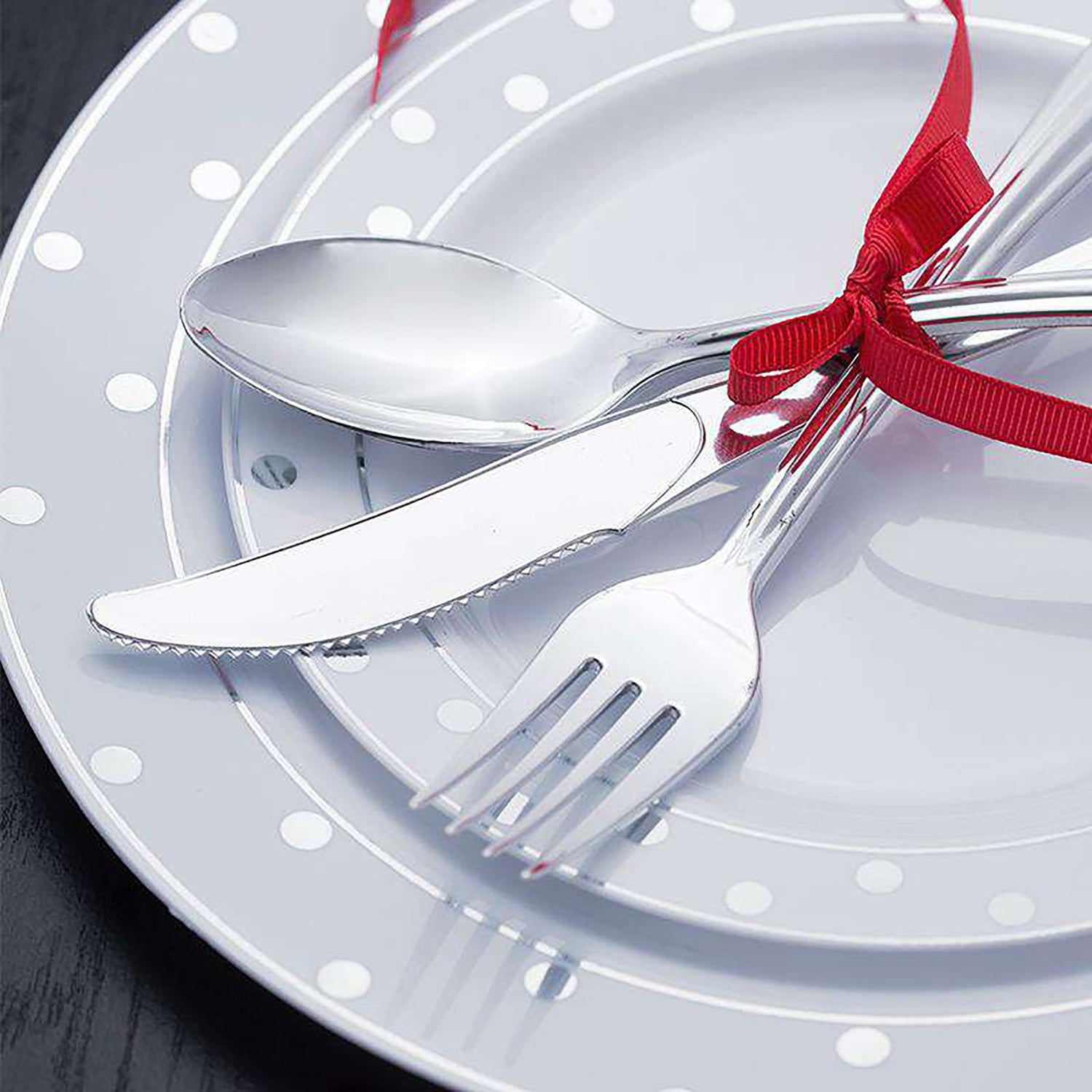 These high-end plastic dinner spoons are the ideal solution for your event when you're looking for elegant disposable cutlery for a wedding reception, birthday party, baby shower, or another special occasion. The bright metallic silver shine adds an air of elegance, while the classic handle design of the spoons makes them look just like the real expensive silverware.