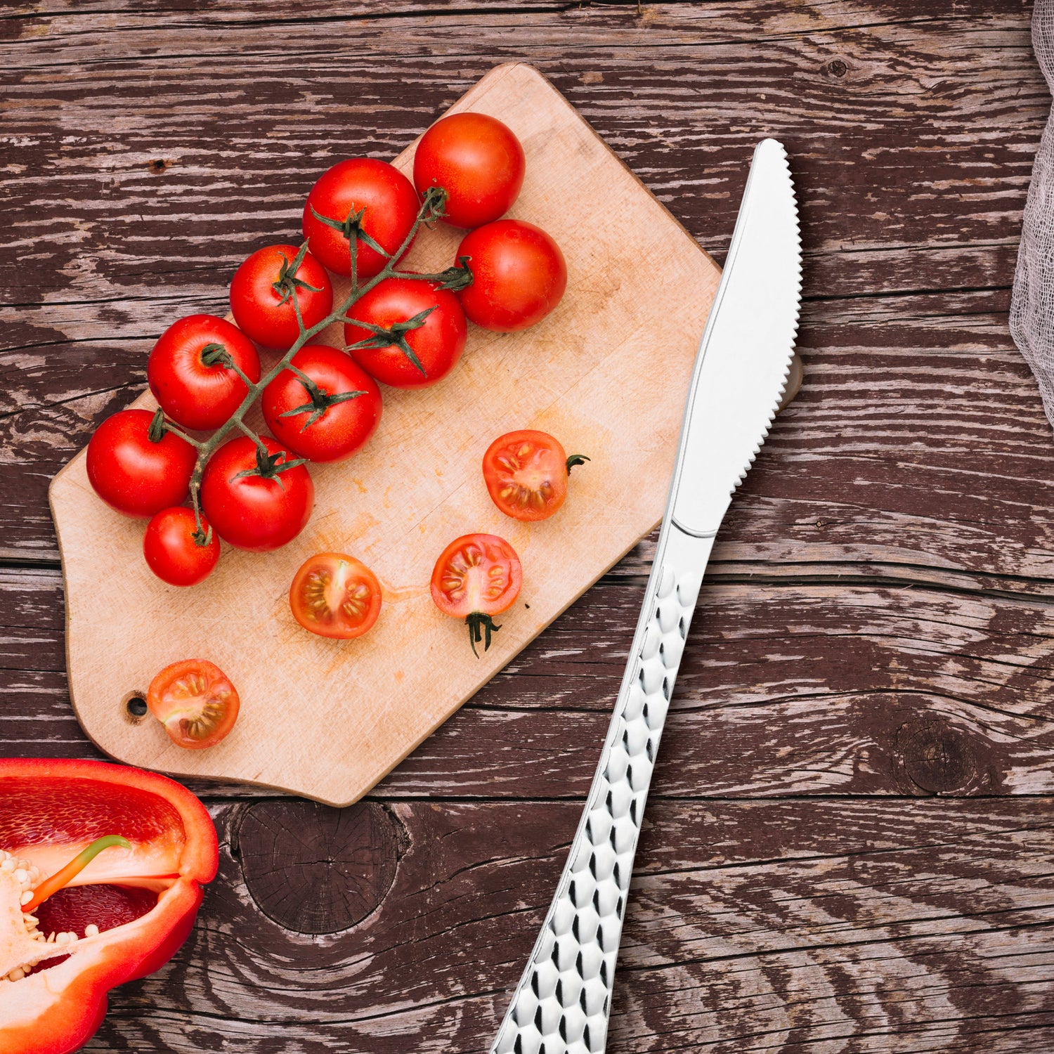 When you have a formal table to set, you want every piece to be as beautiful and refined as the next. This includes the flatware. Using traditional flatware, you get a shiny metal utensil to place among the plates, but you also have to worry about cleaning dozens of them after the party has ended. While disposable flatware is convenient as you can throw it out, many party planners are reluctant to use them as they do not usually have the same appearance as traditional options. But when you use the Shiny Silver Glamour Disposable Plastic Knives, you get the best of both worlds.