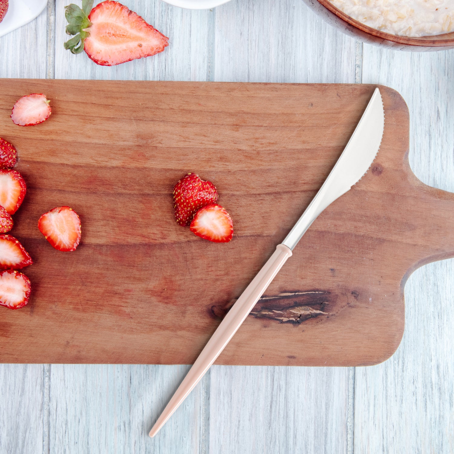 One of the best things about these disposable knives is their convenience. They are pre-packaged and ready to use, so you don't have to worry about washing or storing them after the event. This is especially beneficial for those hosting significant events who need more time or resources to clean up after the guests have left.