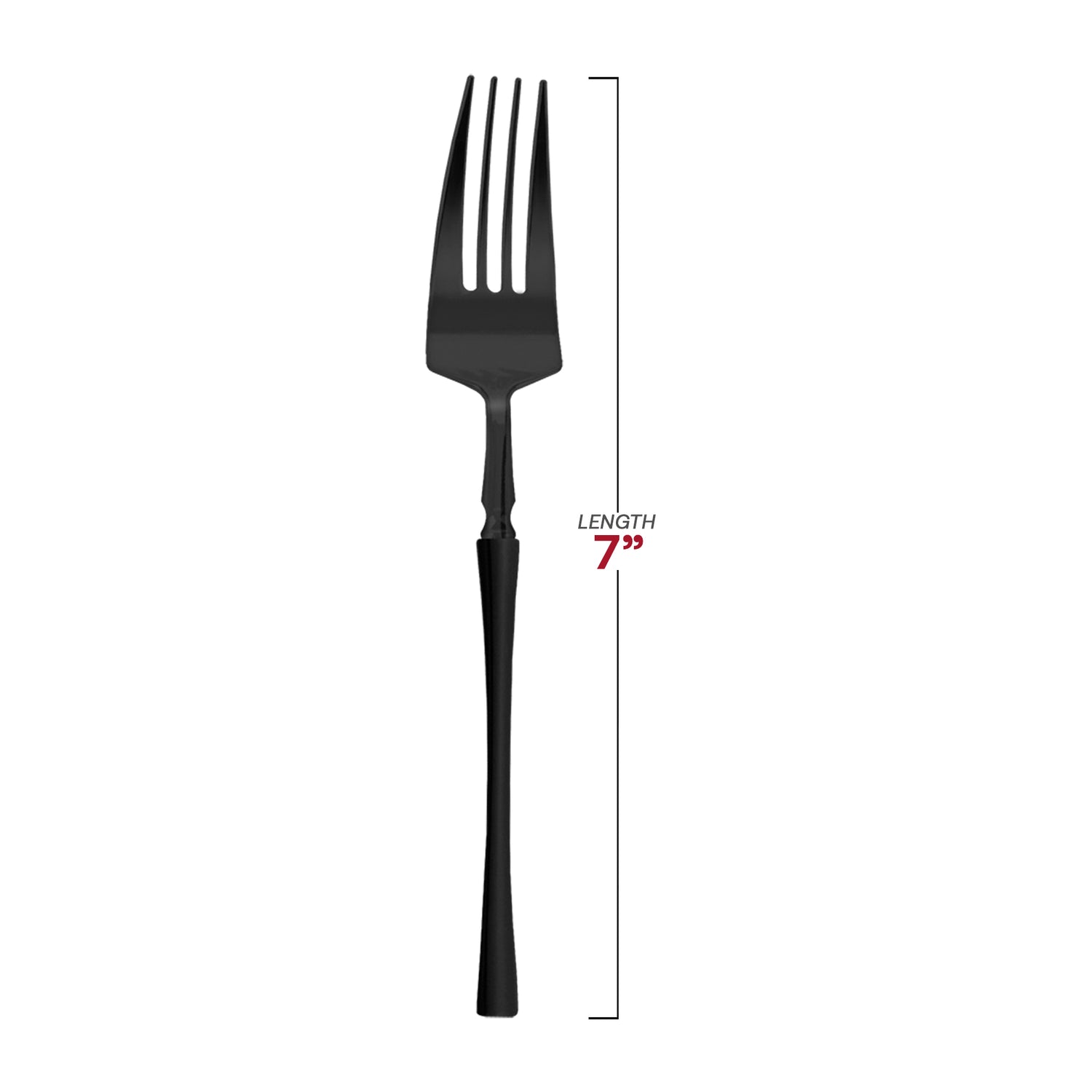 These modern disposable plastic dessert forks blend style and practicality, designed to elevate your dessert presentation while ensuring hassle-free cleanup. These forks are perfect for casual gatherings and formal events, adding a touch of sophistication to any occasion. Crafted from high-quality plastic, these dessert forks offer the appearance of sleek black cutlery, imitating the elegance of their metal counterparts. The solid black color exudes a modern and chic vibe, making them versatile for various table settings. Whether you're hosting a wedding reception, birthday party, or corporate event, these forks effortlessly complement any décor theme, creating a cohesive and refined look.