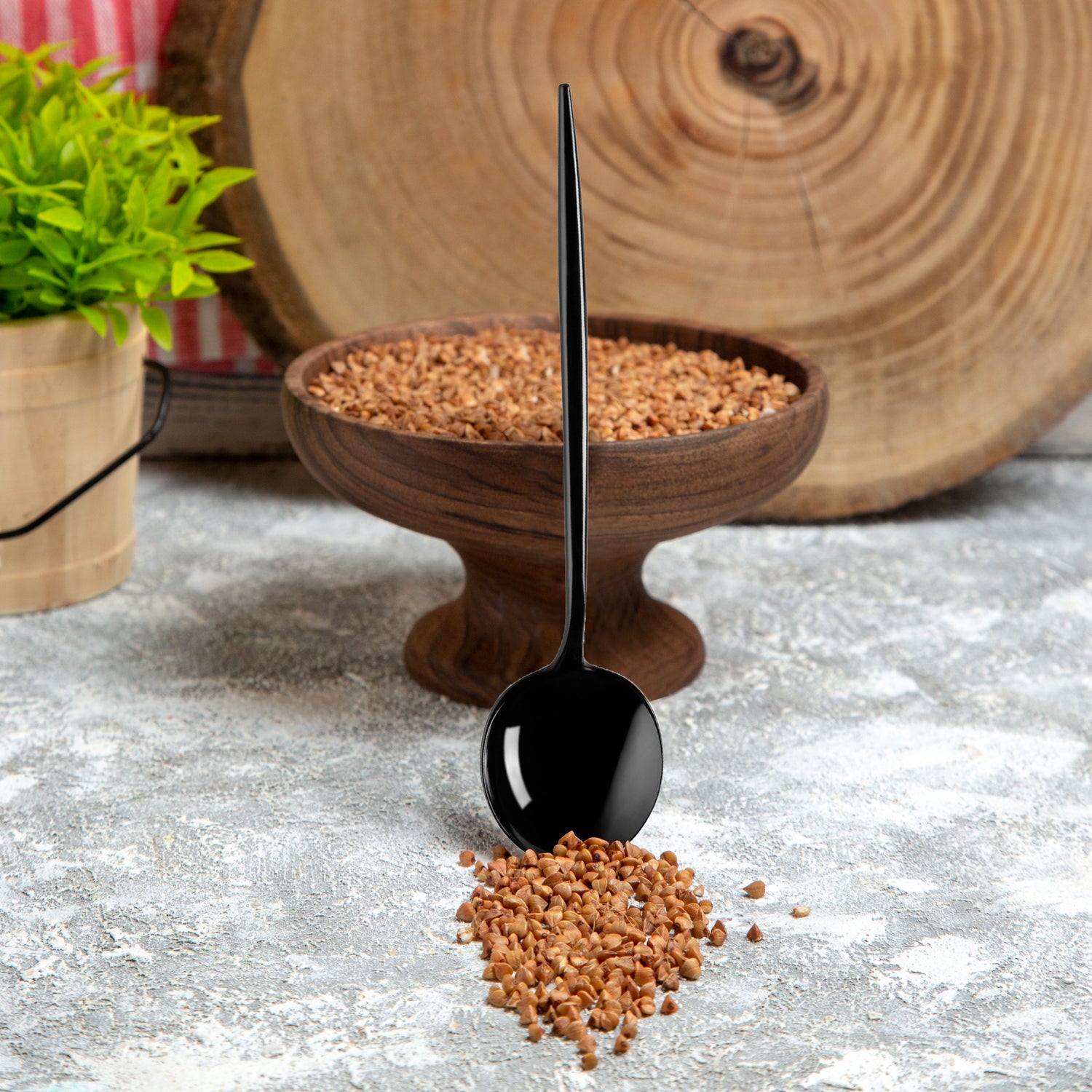These modern disposable plastic dinner spoons are a sleek and stylish addition to your dining experience. Crafted with both functionality and aesthetics in mind, these spoons are designed to elevate any event or occasion. So whether you're hosting a formal dinner party, a casual gathering, or a corporate event, these spoons are the perfect choice for adding a touch of elegance to your table setting. These premium dinner spoons are made from high-quality, durable plastic that combines strength and flexibility. This ensures that they can withstand the demands of any meal while maintaining their structural integrity. In addition, the solid black color adds a modern and sophisticated element to your table, creating a visually appealing contrast against any backdrop.