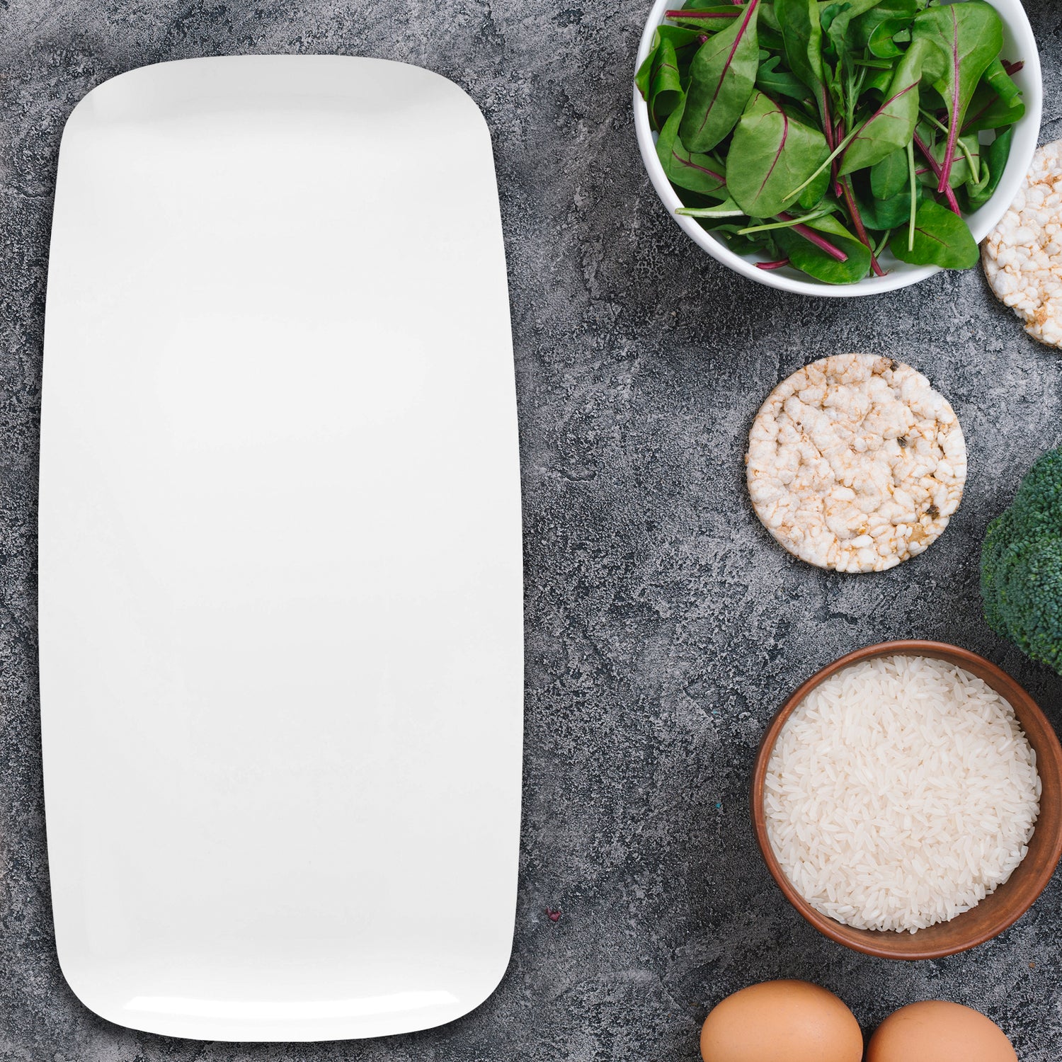 Solid White Flat Raised Edge Rectangular Plastic Plates (10.6" x 5")