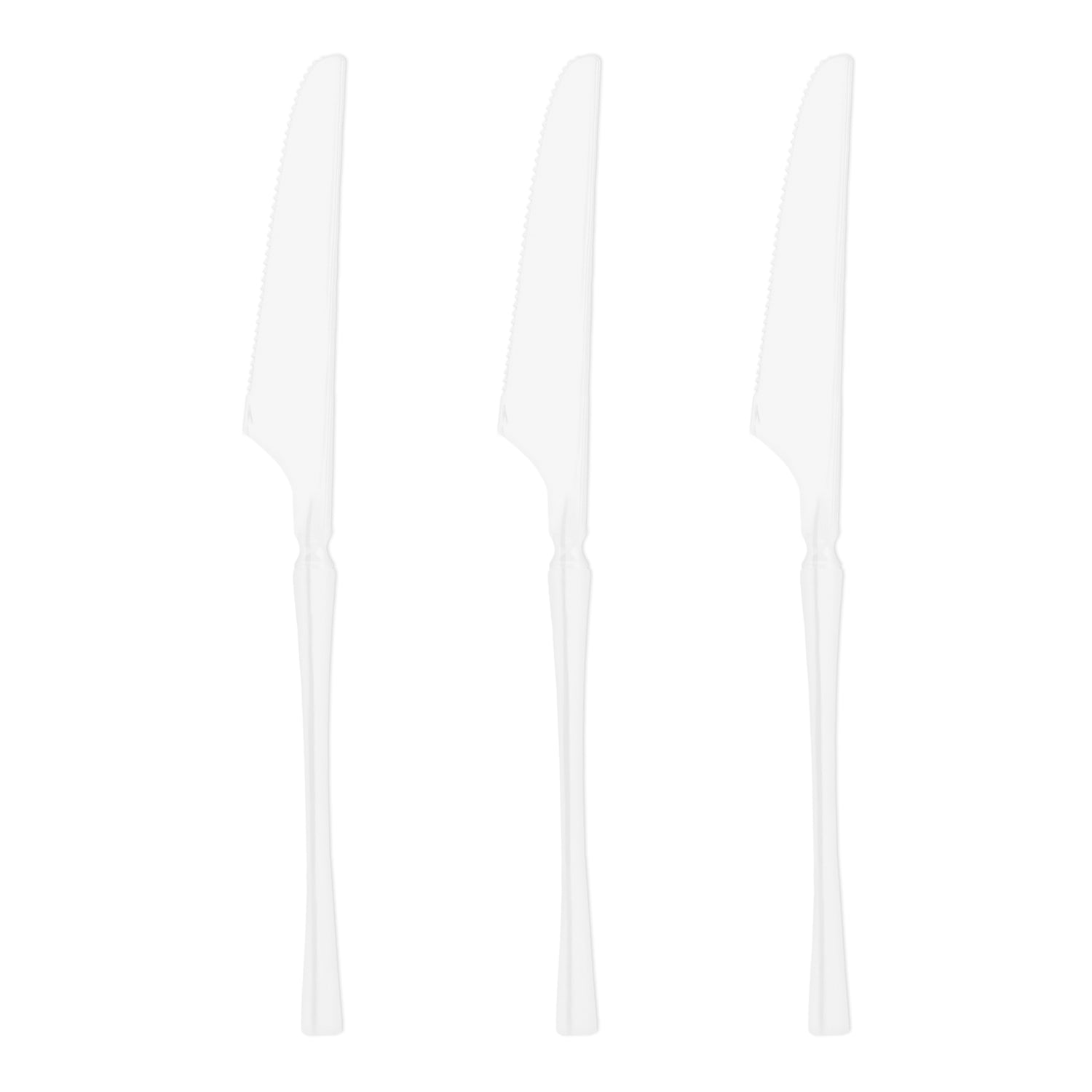 Perfect for weddings, birthday parties, holiday dinners, and corporate events, these knives are also ideal for outdoor occasions where traditional cutlery is impractical. Pair them with our matching forks and spoons to create a cohesive and stylish table setting that will leave a lasting impression. Complete your cutlery with our disposable servingware for a harmonious table arrangement. Get Yours Today and experience the perfect combination of style, convenience, and affordability. Make your next event unforgettable with our elegant disposable dinner knives.