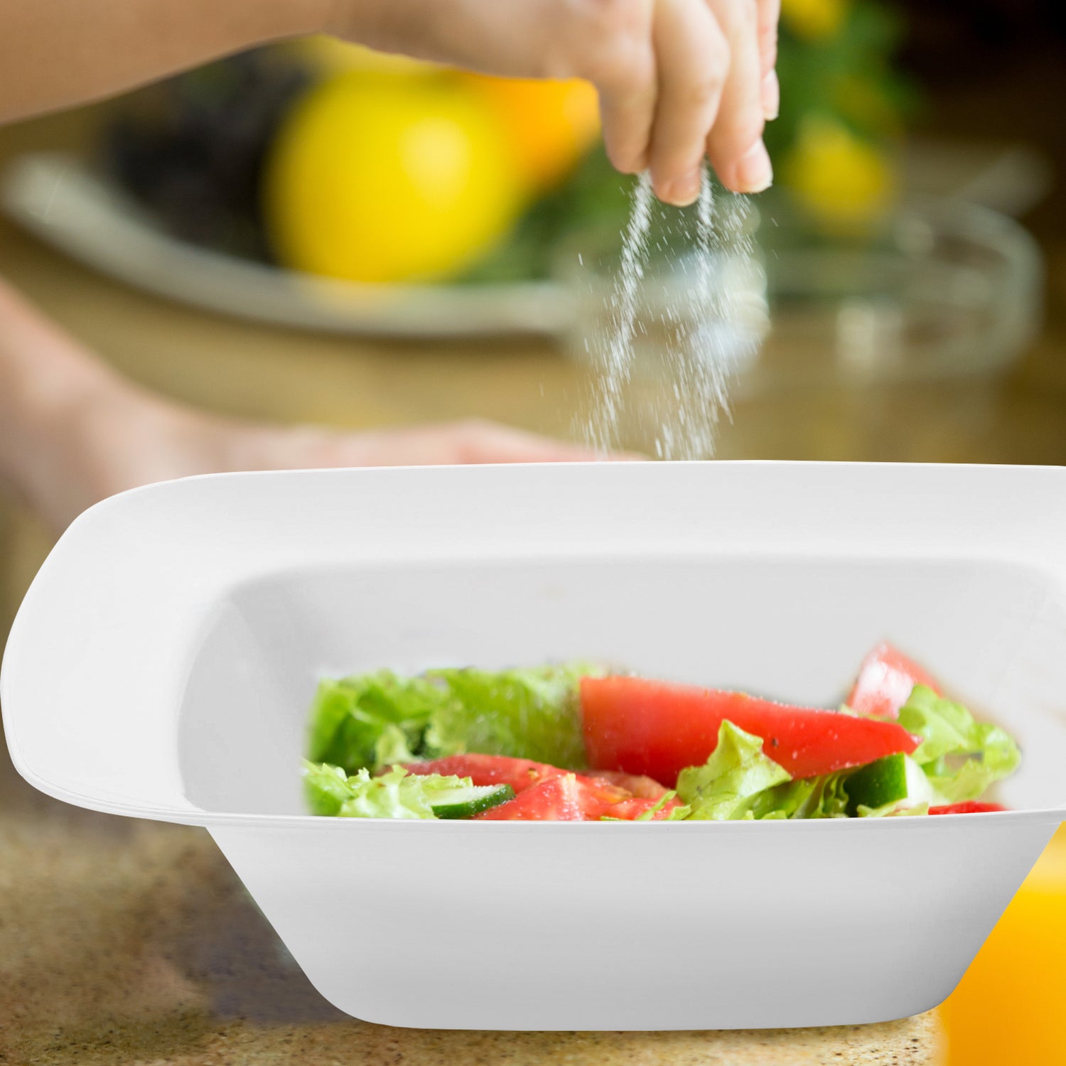 Modern solid white rounded square disposable plastic dessert bowls are an excellent choice for serving desserts, snacks, and other small portions at any event or gathering. These dessert bowls are made from high-quality, durable plastic designed to withstand regular use without cracking or breaking, making them a practical and cost-effective option for caterers, event planners, and party hosts.