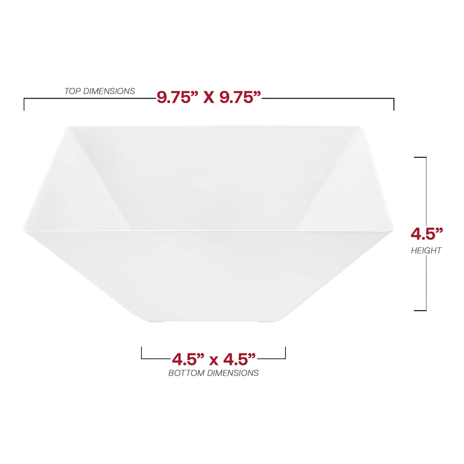 White Square Disposable Plastic Serving Bowls (3 qt.)