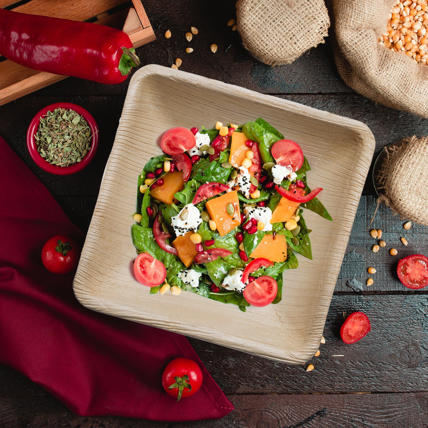 - Sustainably produced using fallen leaves. Won't bend or buckle from the weight of food