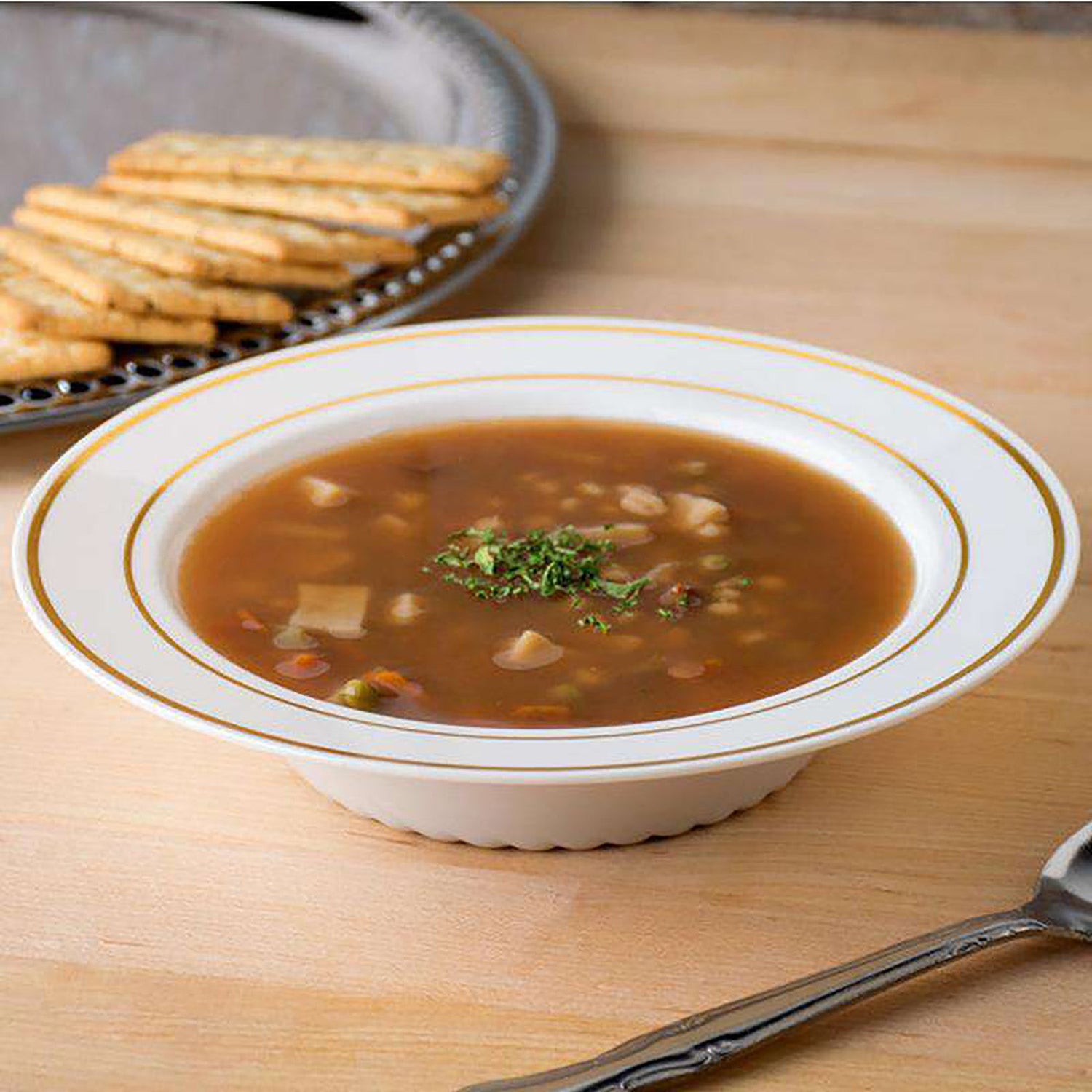 White with Gold Edge Rim Disposable Plastic Soup Bowls (12 oz.)