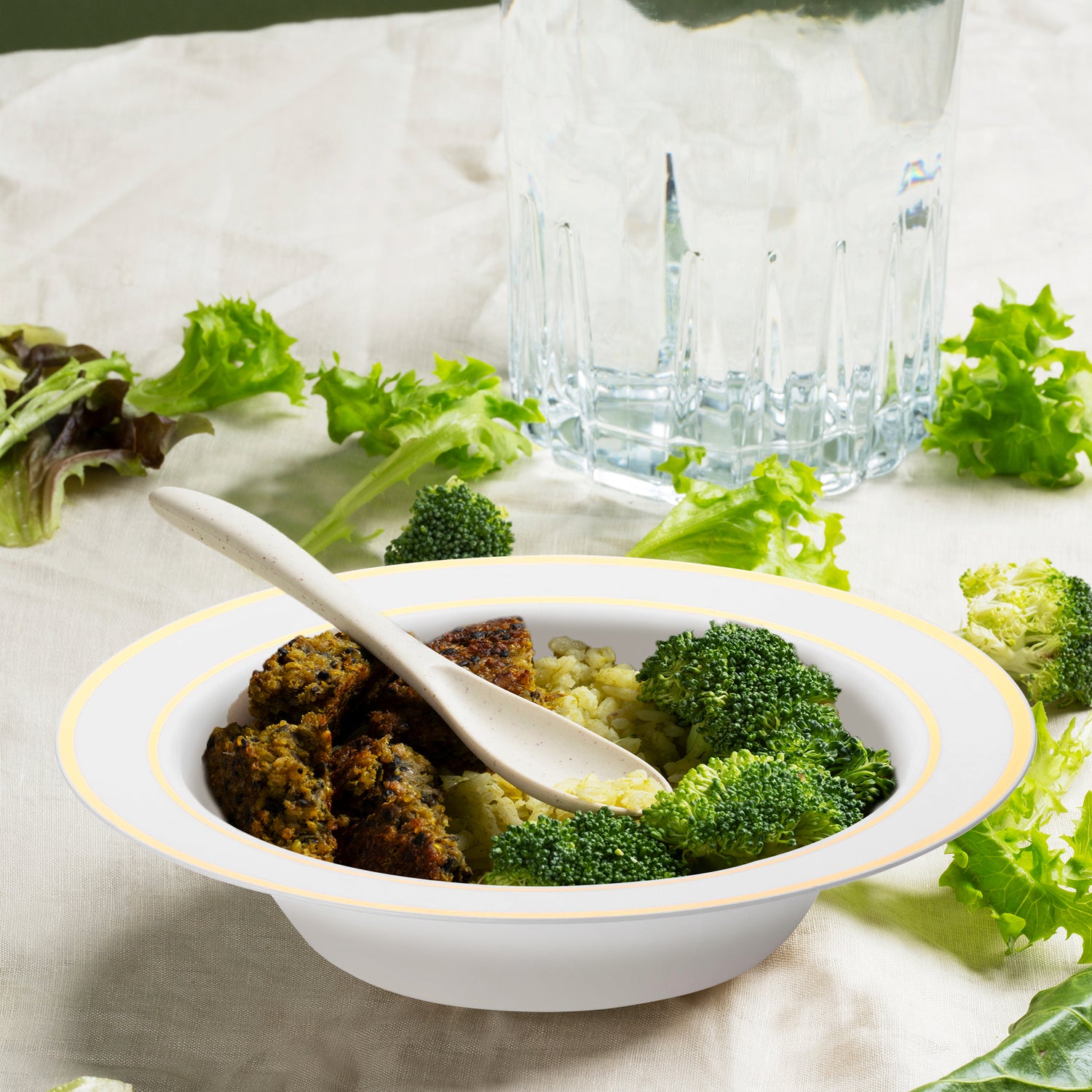 White with Gold Edge Rim Round Plastic Dessert Bowls (5 oz.)
