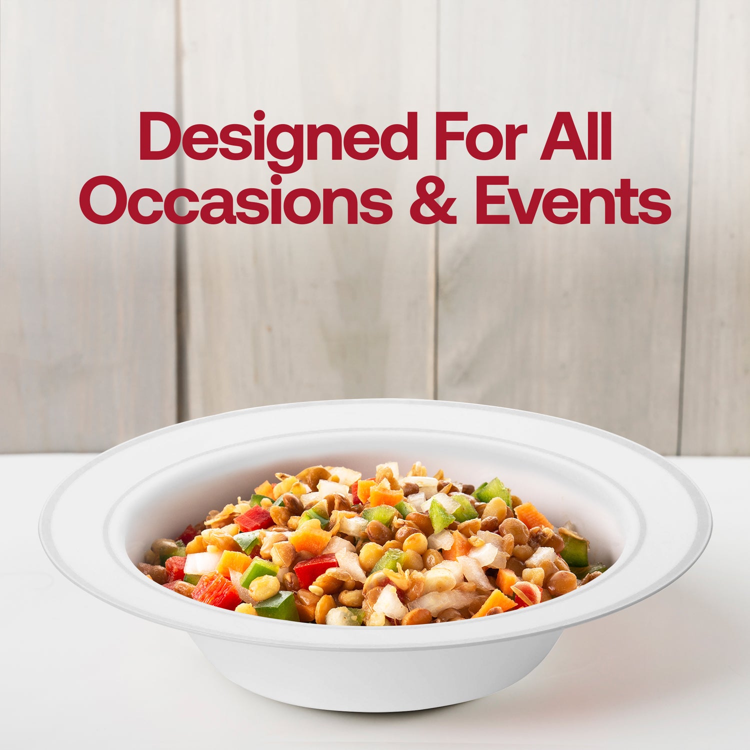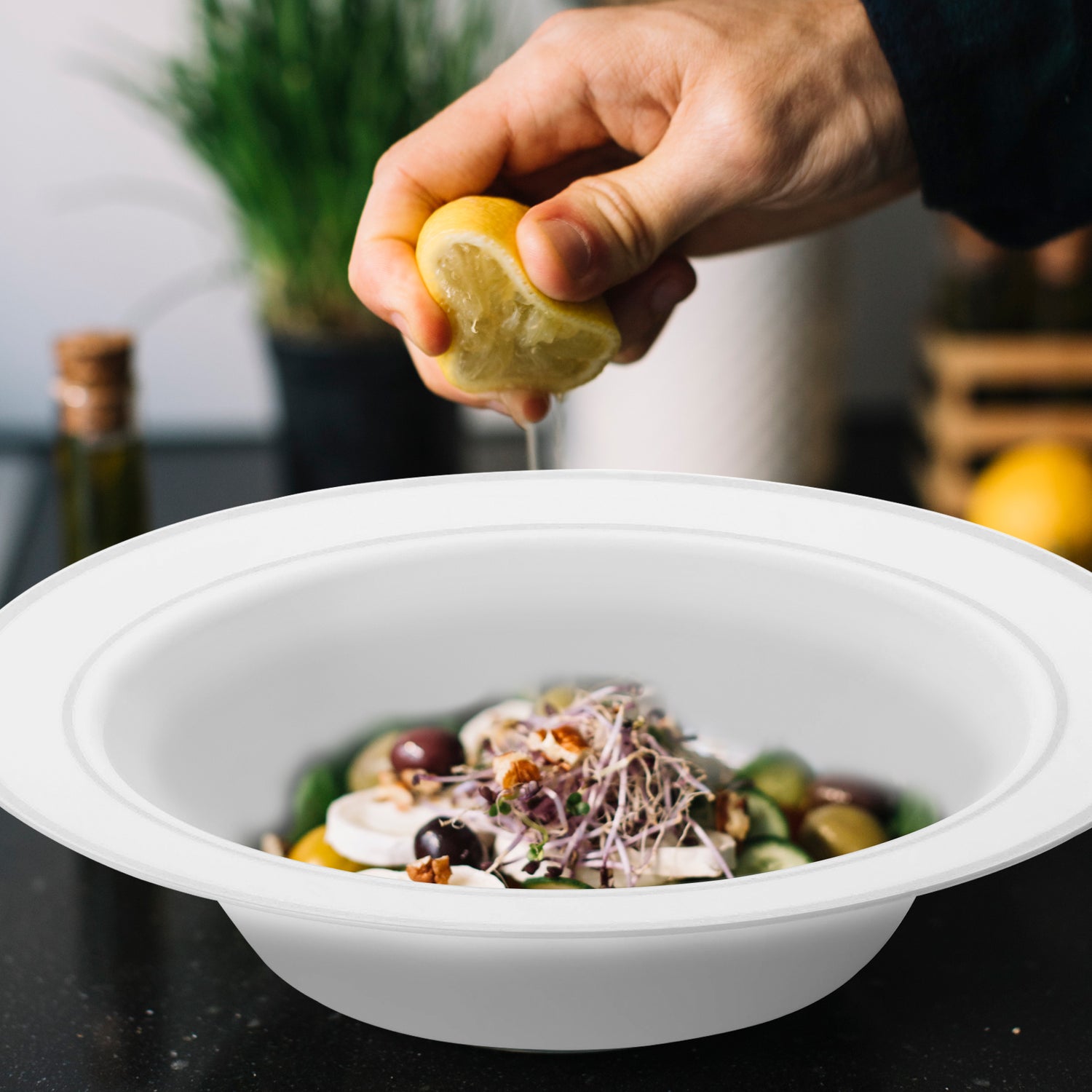 The white color of these bowls is easy to coordinate with most of your other tableware. Sleek and stylish silver edges along the rims add a touch of style to the bowls, making them a great addition to any event. These disposable bowls are perfect for any special occasion, and you can throw them away with no risk of cross-contamination. These white with silver edge rim disposable plastic soup bowls are ideal for any event, including a birthday party, baby shower, wedding reception, anniversary, bridal bash, holiday feast, and other catered events.