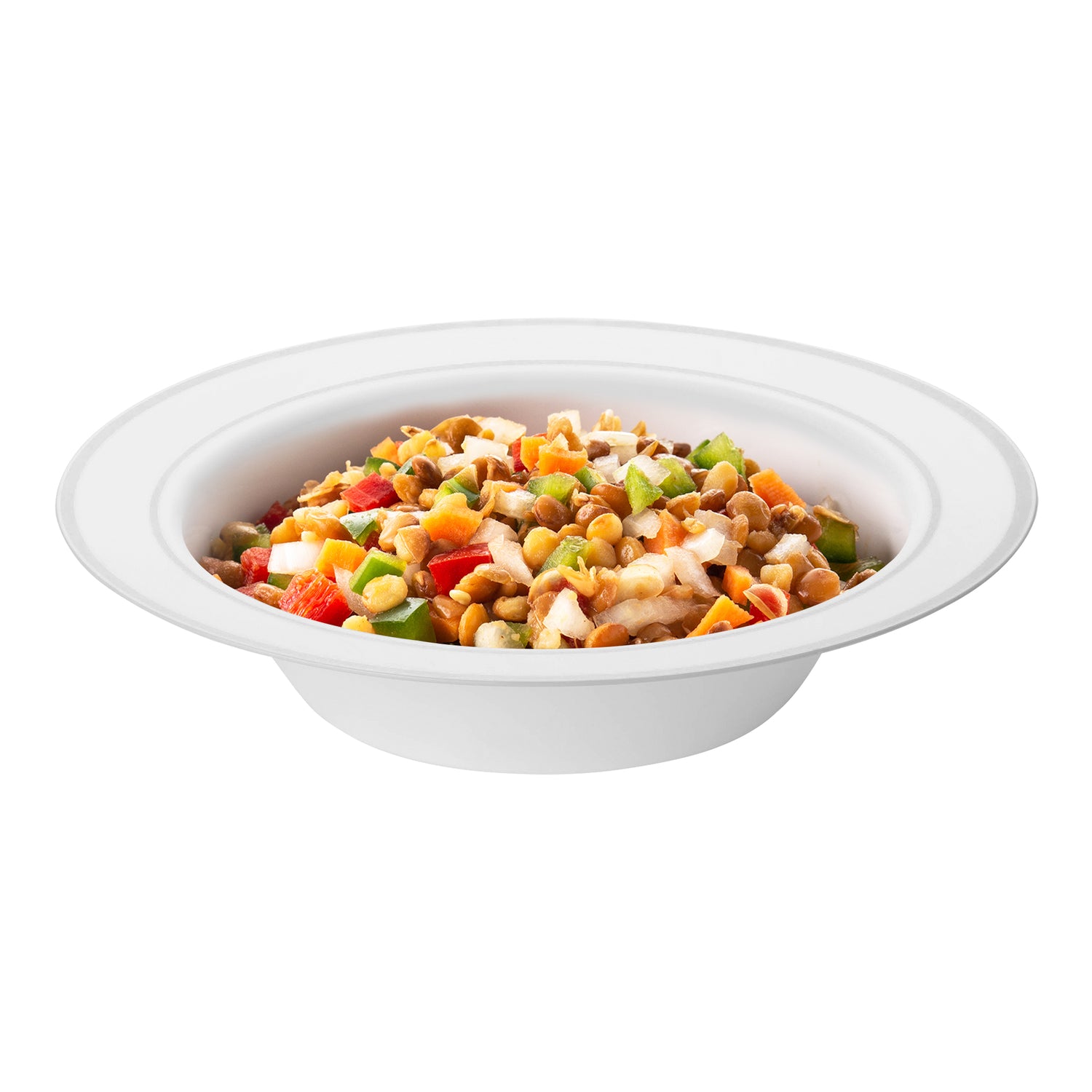 White with Silver Edge Rim Disposable Plastic Soup Bowls (12 oz.)