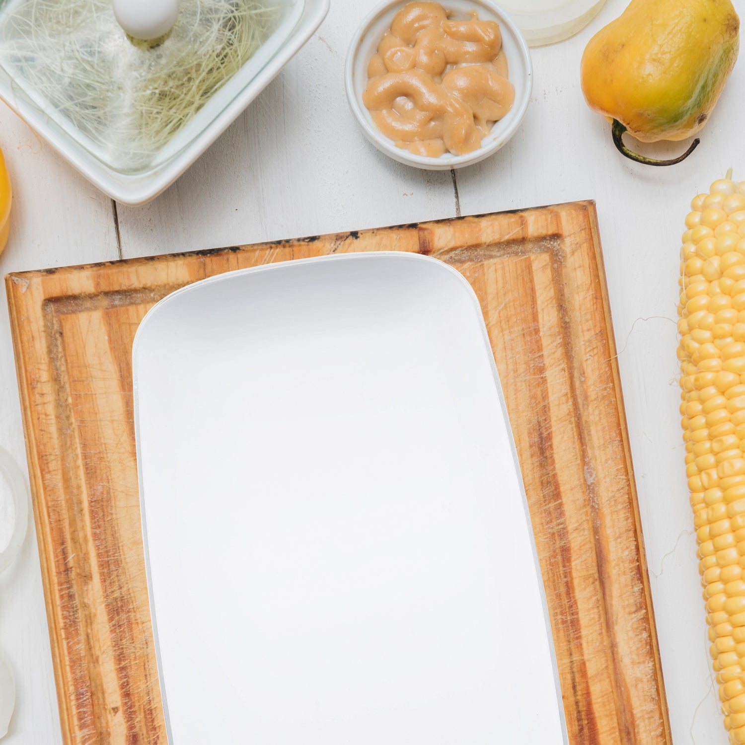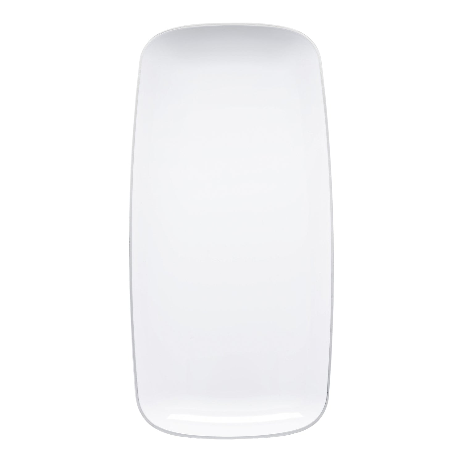 White with Silver Rim Flat Raised Edge Rectangular Plastic Plates (10.6" x 5")