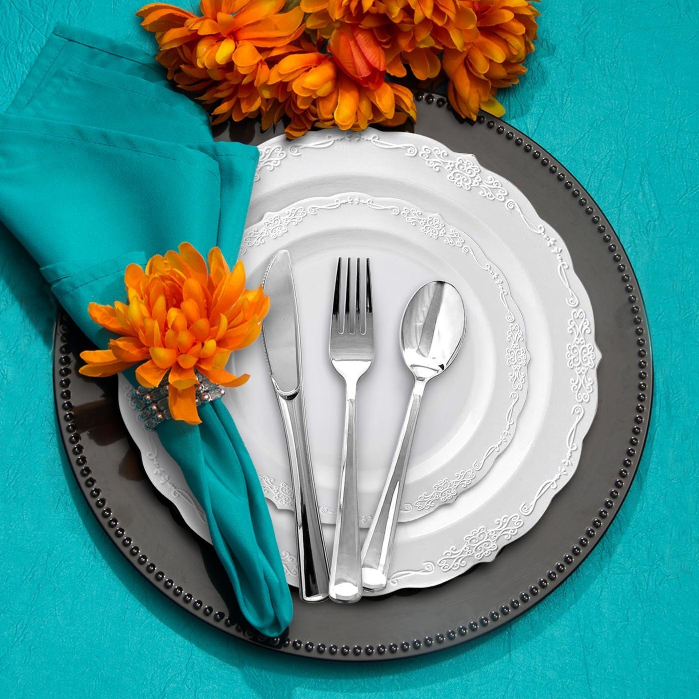 Their solid and extra-durable plastic construction makes them sturdy and dependable while providing an exceptional dining experience for fancy occasions such as wedding receptions, birthday parties, baby showers, bridal bashes, catered events, and other upscale celebrations. Additionally, these premium plates are conveniently disposable, which allows a quick and effortless after-party cleanup process.