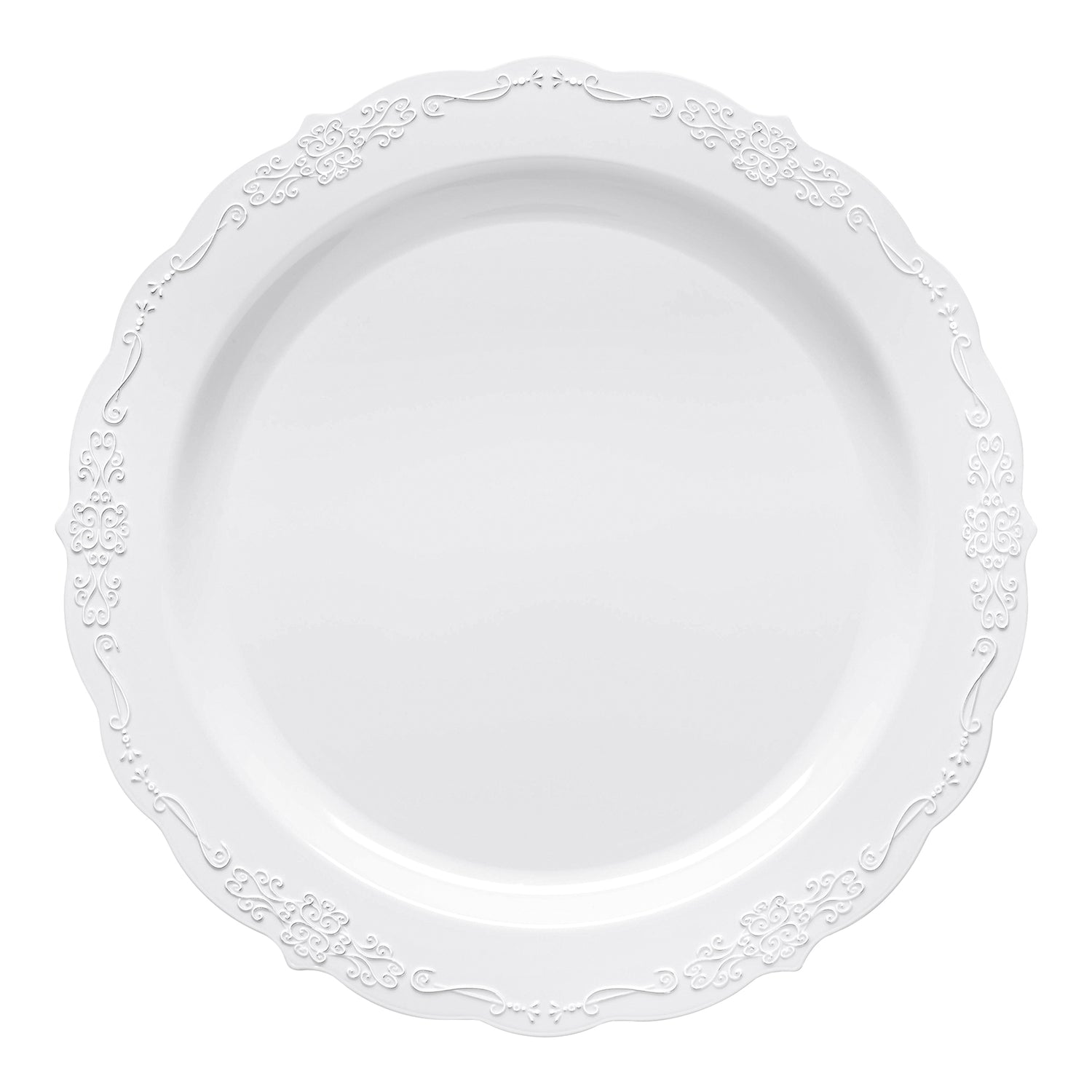 White Vintage Round Disposable Plastic Salad Plates (7.5")