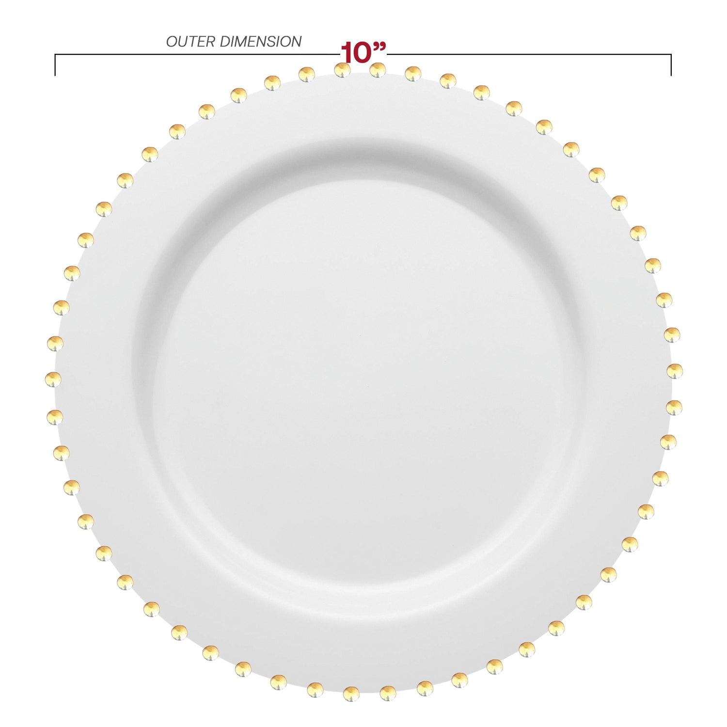 White with Gold Pearl String Round Plastic Dinner Plates (10”)