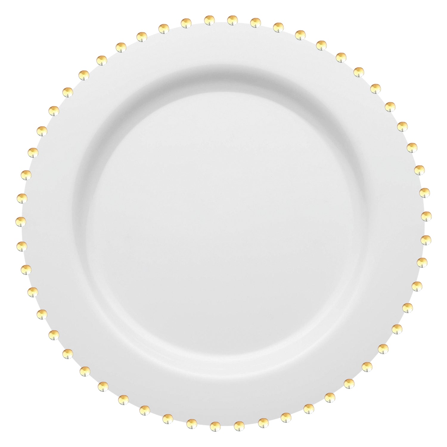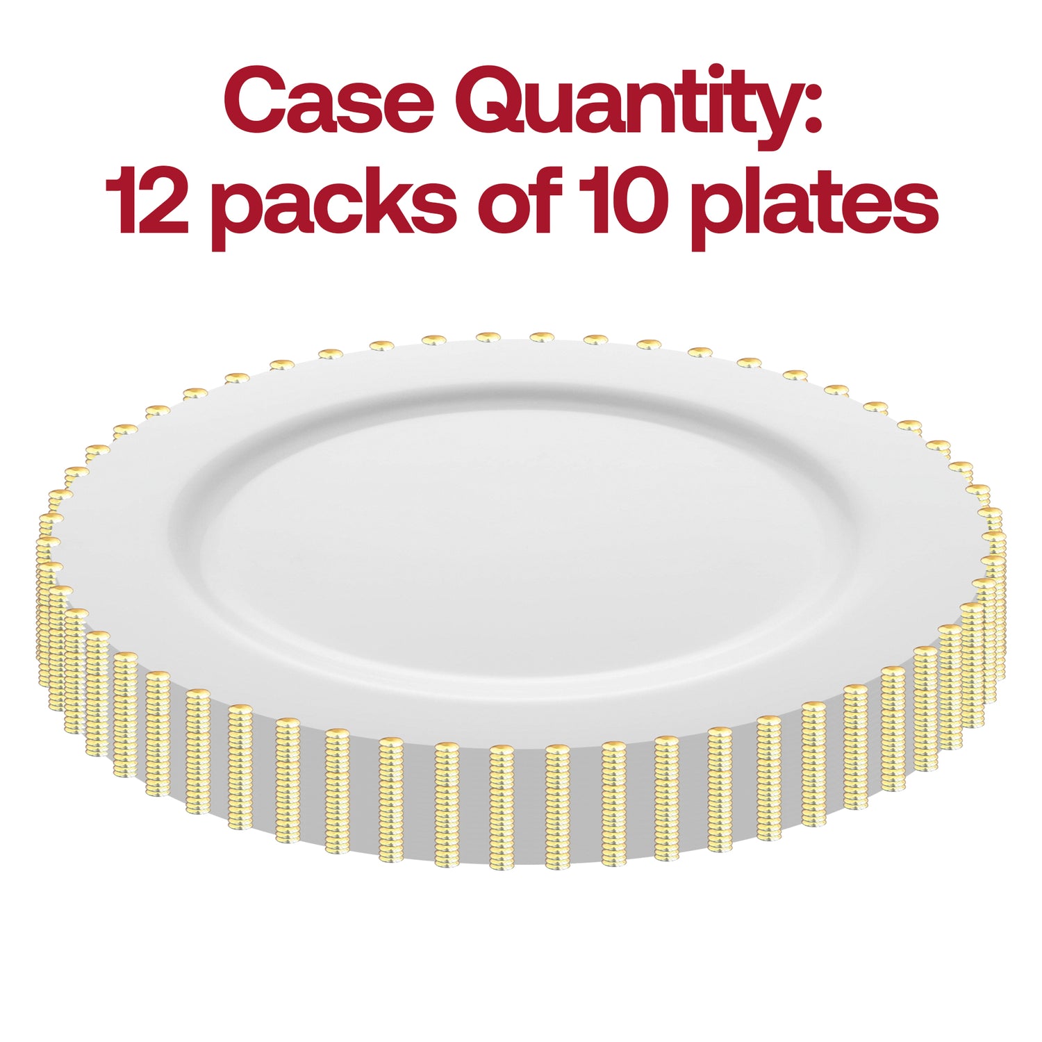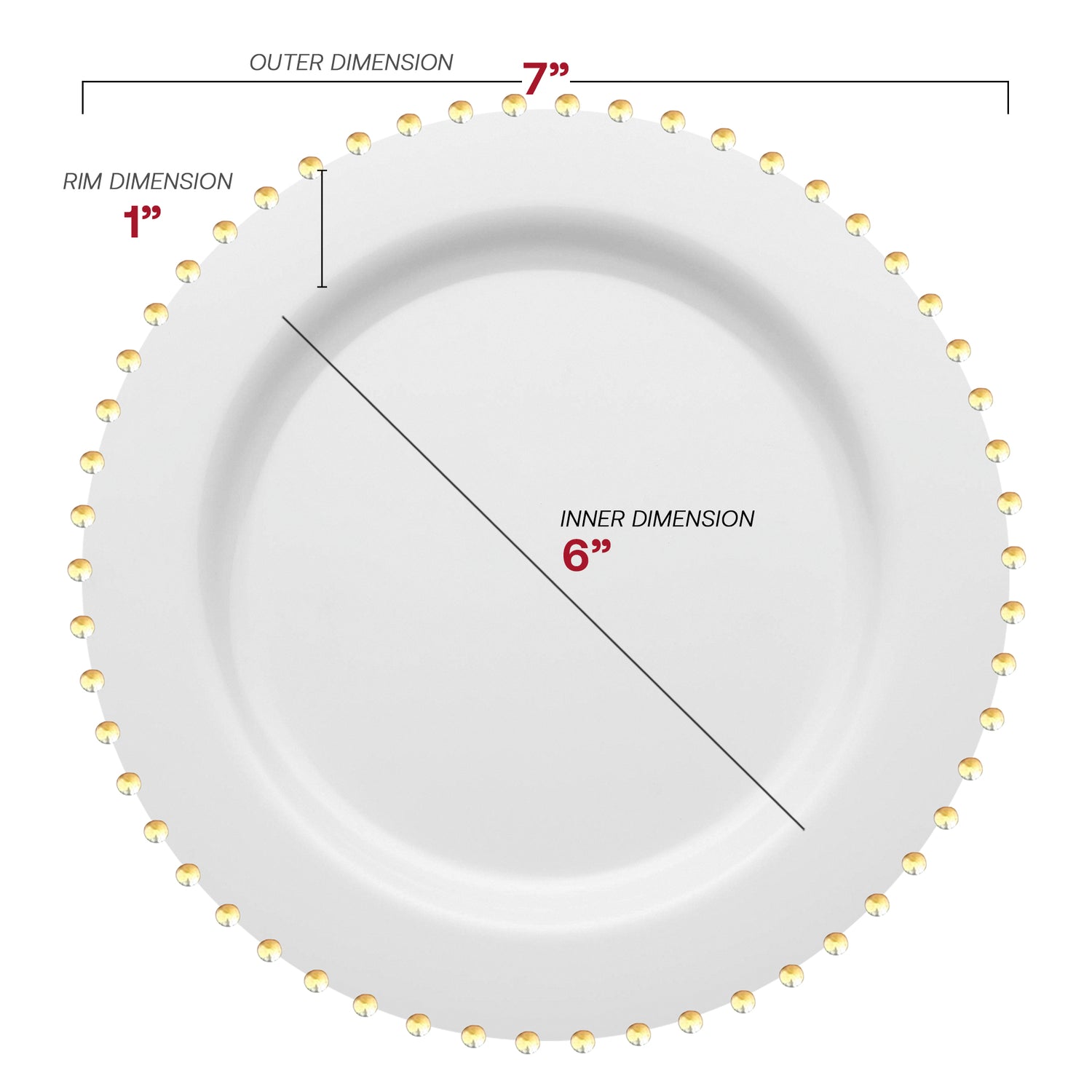 White with Gold Pearl String Round Plastic Salad Plates (7”)